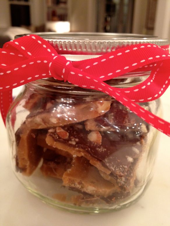 Washington, my home state, is famous for many things: apples, Starbucks, Boeing, Microsoft, Amazon, and Almond Roca. If you’re not from Washington, you probably just said, “Almond Whaaat?” But anyone from the Evergreen State, or the West Coast for that matter, would recognize the ubiquitous buttercrunch toffee shaped like little nut-studded logs, wrapped in gold foil and packed in Barbie-pink tins. We often used the terms Almond Roca and Almond Toffee interchangeably (a marketer’s nightmare!), and my high school friend Jen used to make Almond Roca/Toffee every Christmas. I always thought hers was much better than Brown & Haley’s pink-canned version.