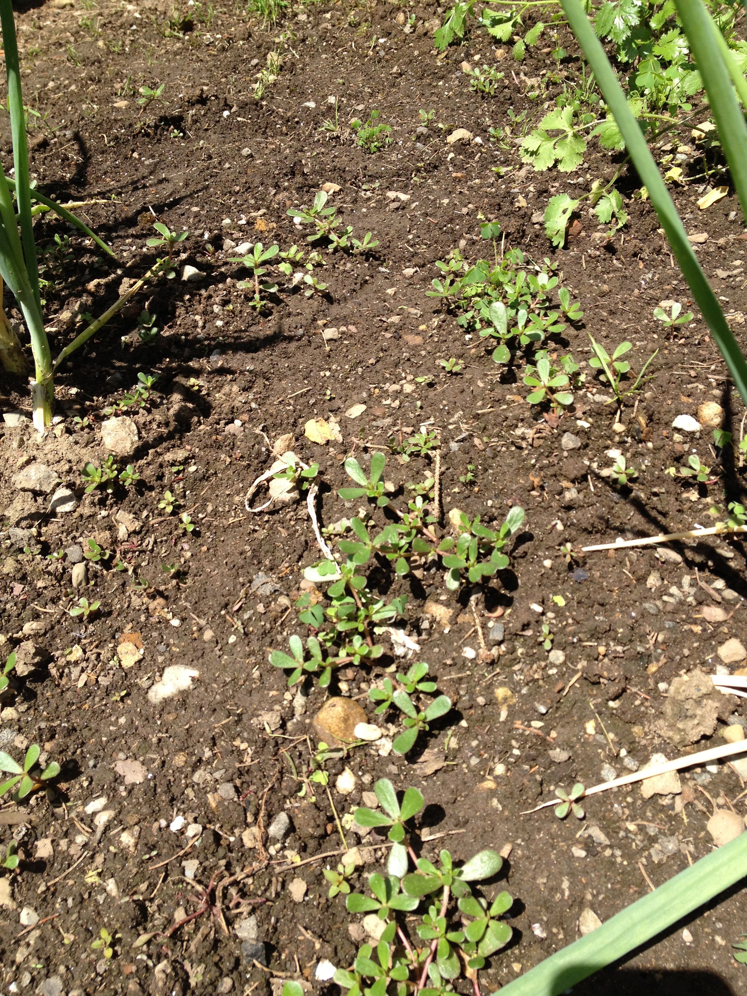 Early June: Attempt to keep weeds at bay. Worst offenders are shamrock, crab grass and purslane – which though a nuisance is edible, at least. If you have any good purslane recipes, please post them in a comment!