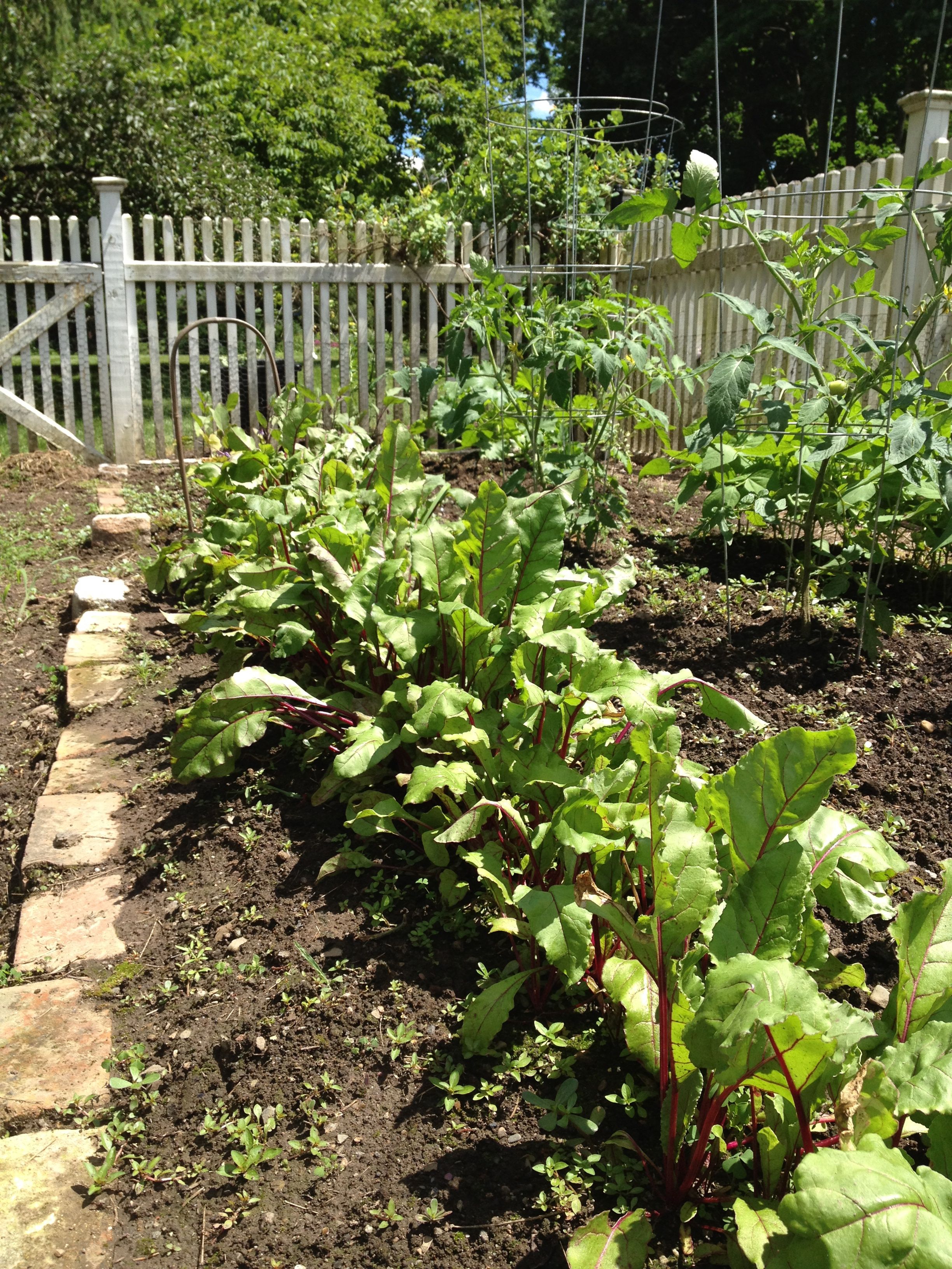 This Week’s Project: Thinning the beets (below, with the bright red stems). Might use the leaves from the thinned plants to make beet green pizza. Might still be ordering a pepperoni pie for those wary of green, but at least it’s a local delivery.