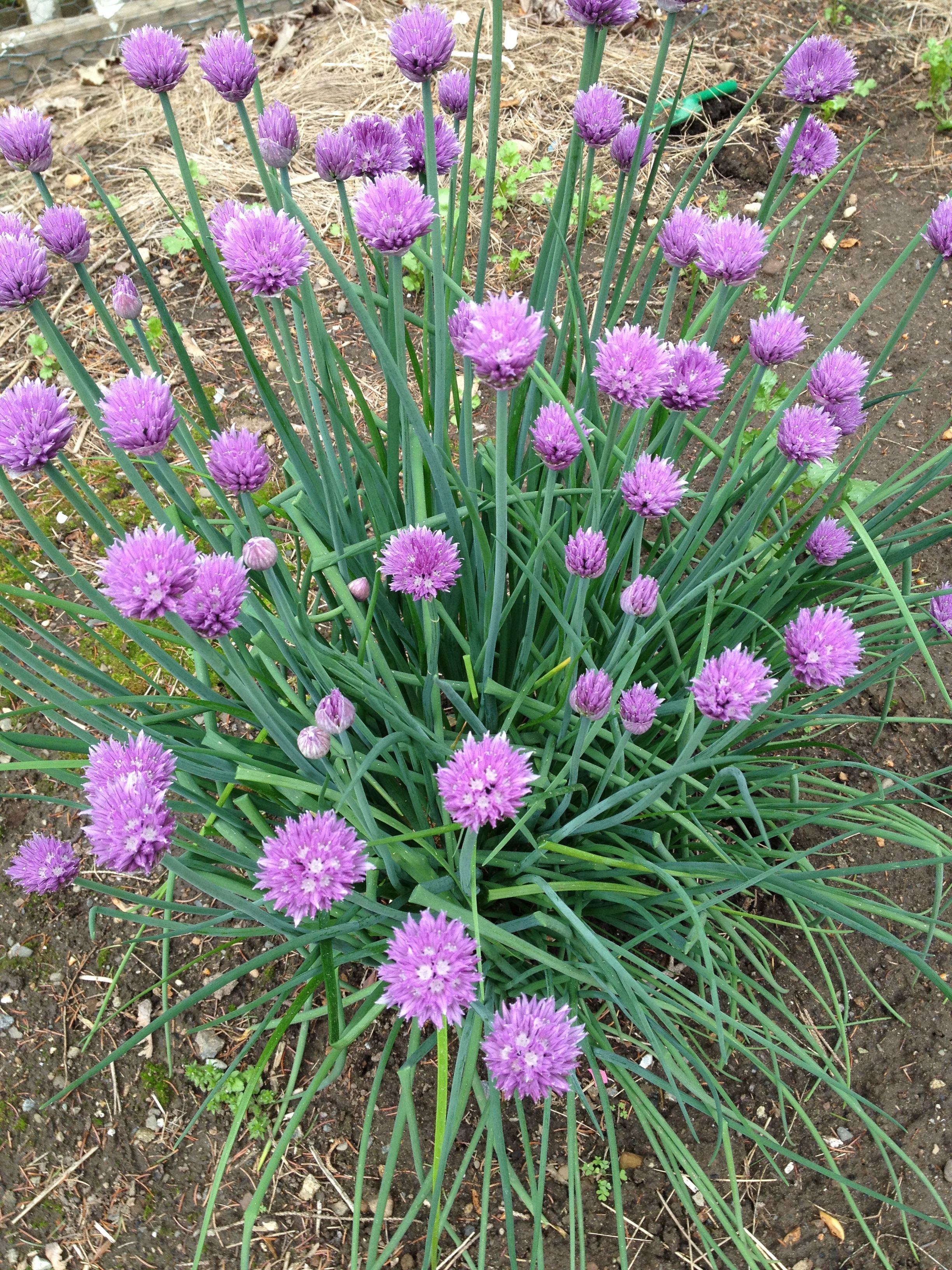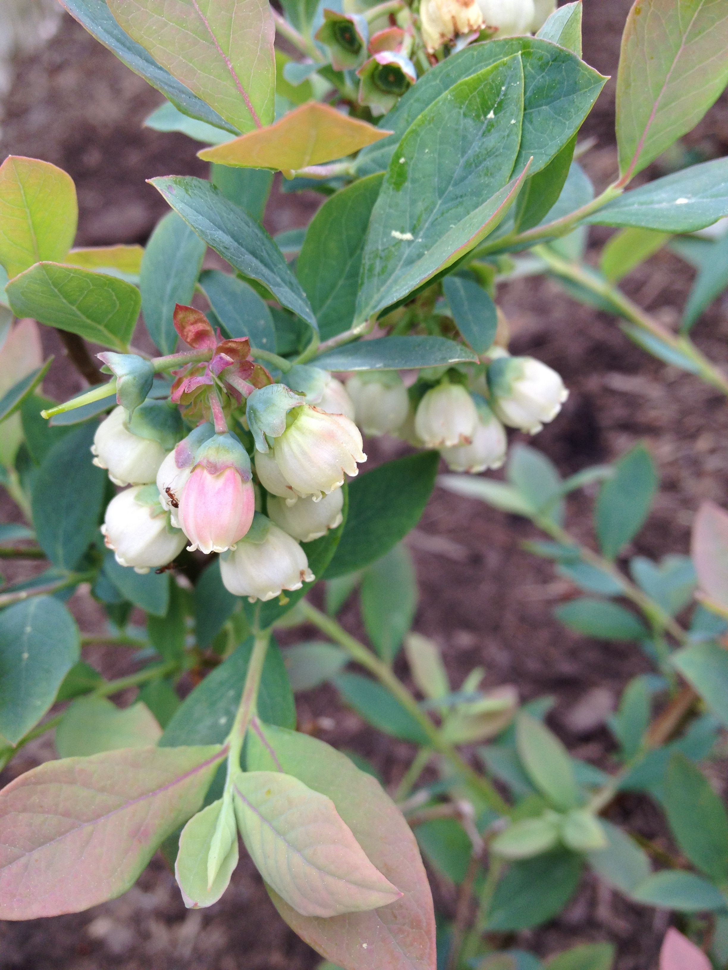 Some strawberries are forming, but until I find a way to keep out the squirrels and chipmunks we’ll be lucky to harvest any. The chives and blueberry bushes are in bloom.