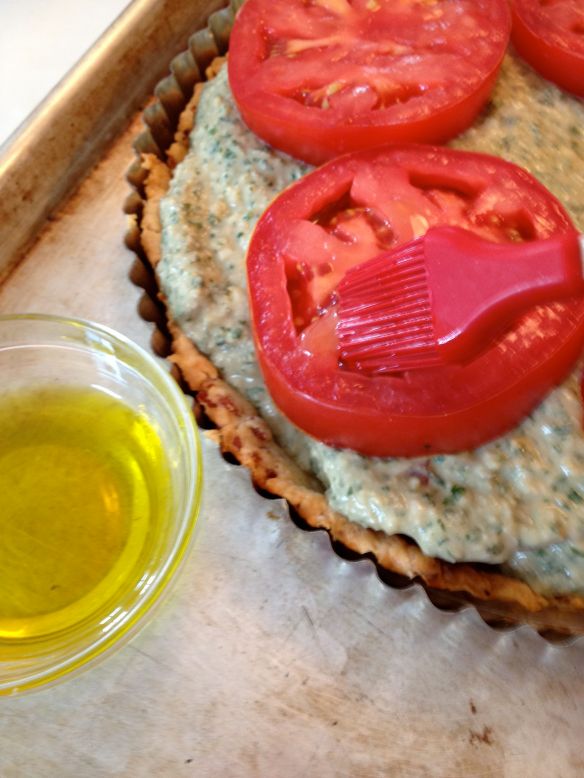 Brush tomatoes with olive oil and bake 55 minutes or until mixture is set. (Tart will firm up as it cools.)
