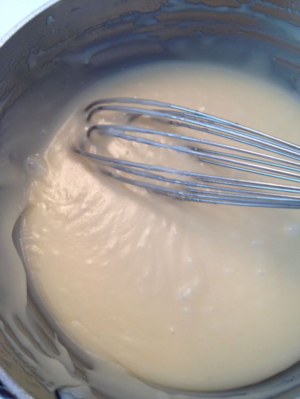 In a small saucepan, melt butter. Whisk in sugar and vanilla.