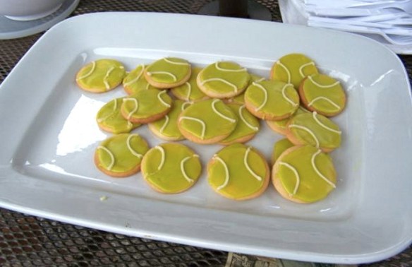 Well, maybe in a few years. In the meantime, we’ll get into the spirit of things by serving up these mini tennis ball cookies – simple sugar cookies with a shiny, glow-green glaze.