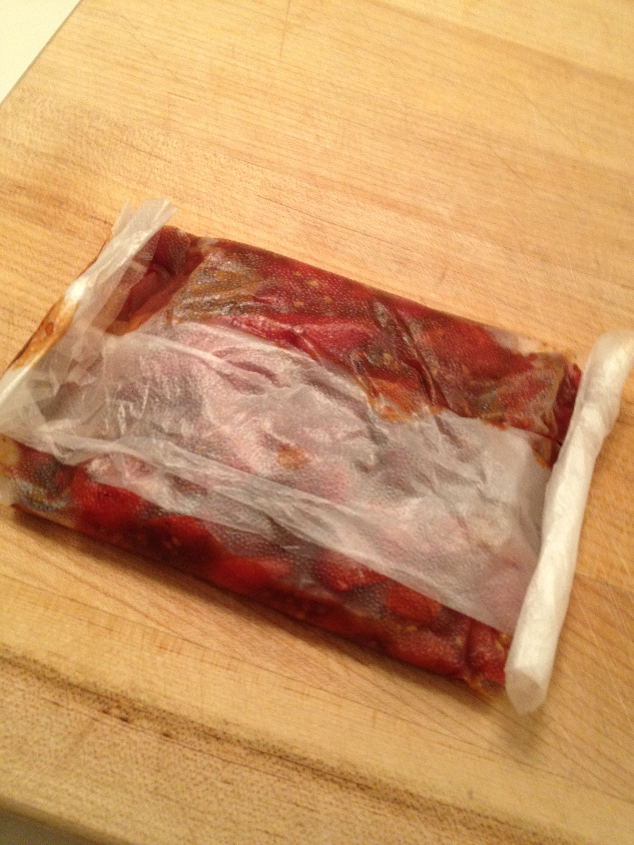 More than just a simple way to preserve tomatoes, Tomato Caramel is also the world’s easiest tomato sauce, a tasty topper for ricotta or goat cheese-smeared baguette slices, and great way to add flavor and complexity to spaghetti sauce (jarred or homemade), taco filling, soups, chili, lasagna, etc.  I freeze the “caramel” in little packets, and add them to any dish that needs “a little something”.