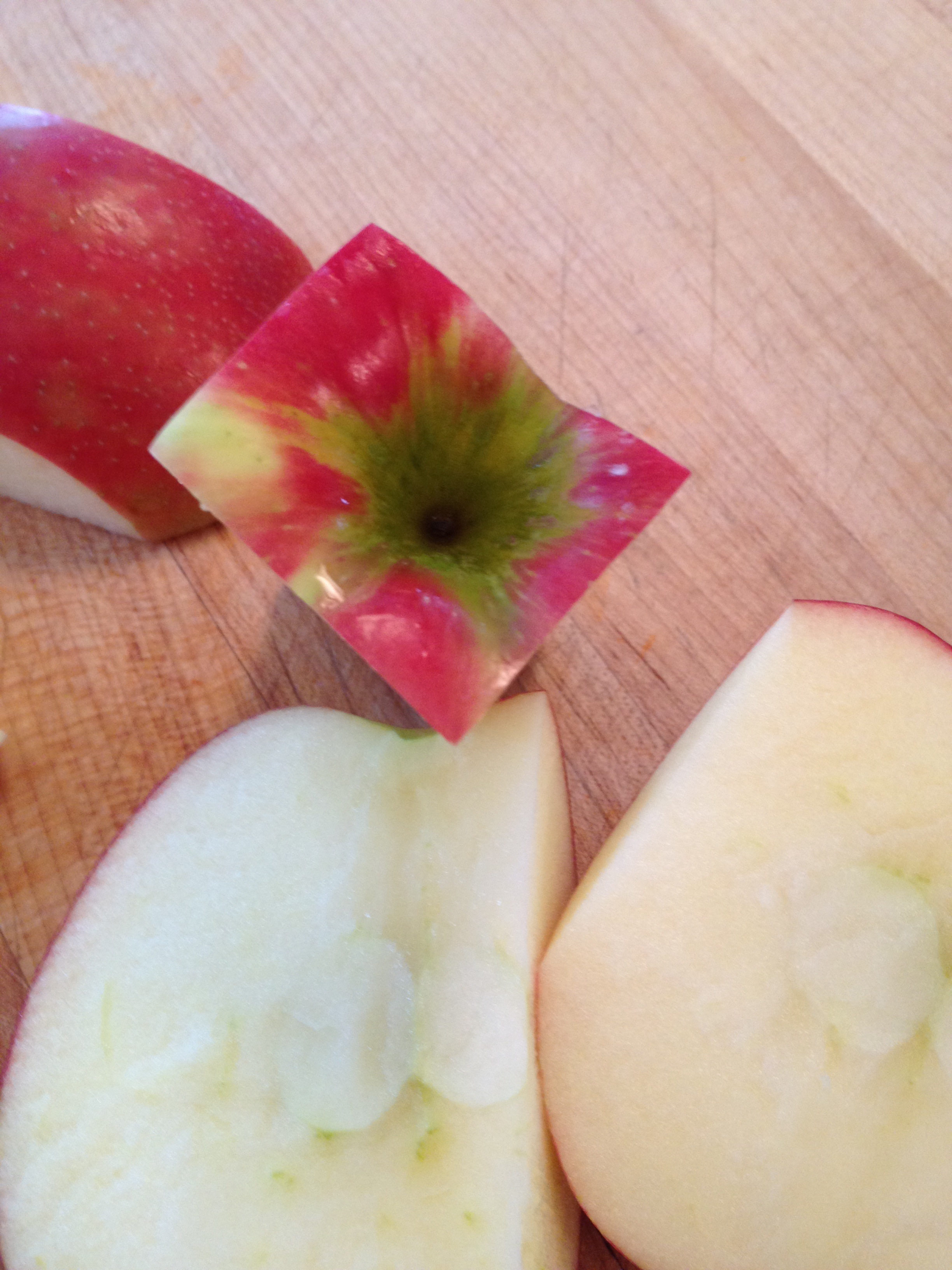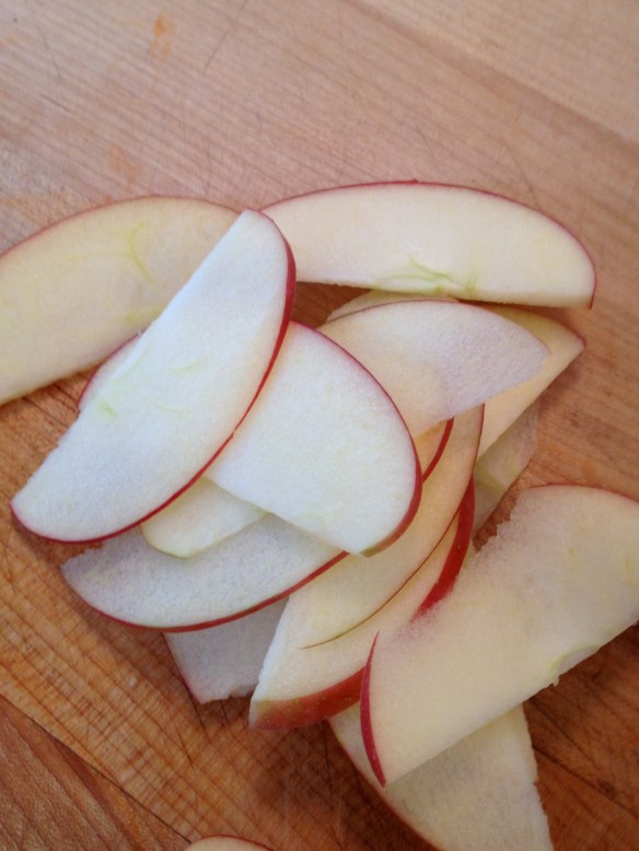 - ½ (or more) Honeycrisp or Gala apple, thinly sliced (see quick method below for coring & slicing apples)