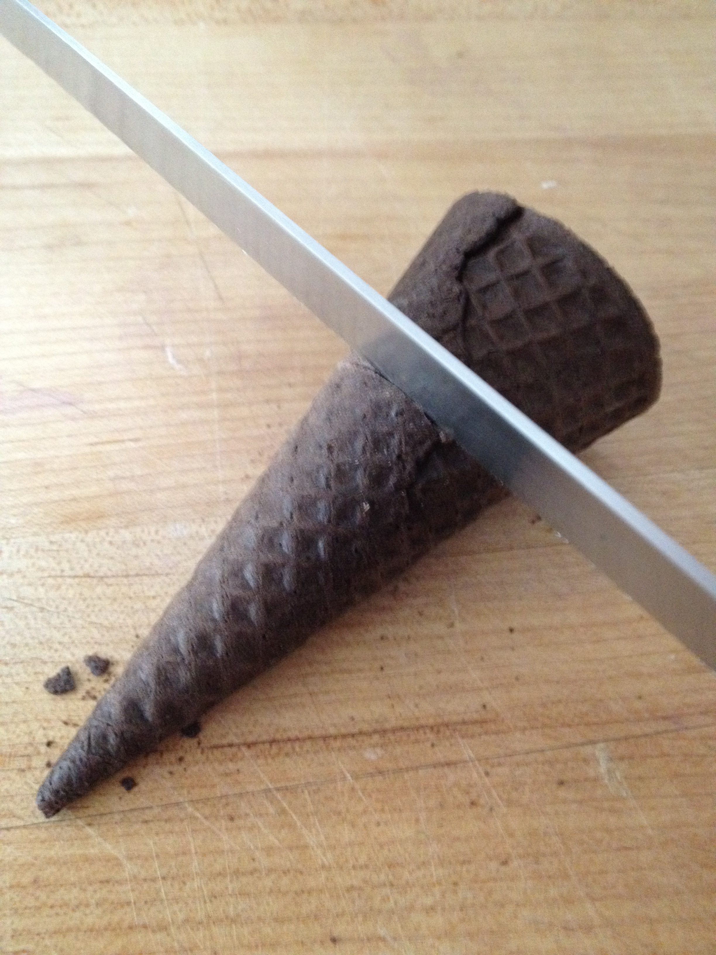 Using a serrated knife, saw 1” off the wide end of the cones.