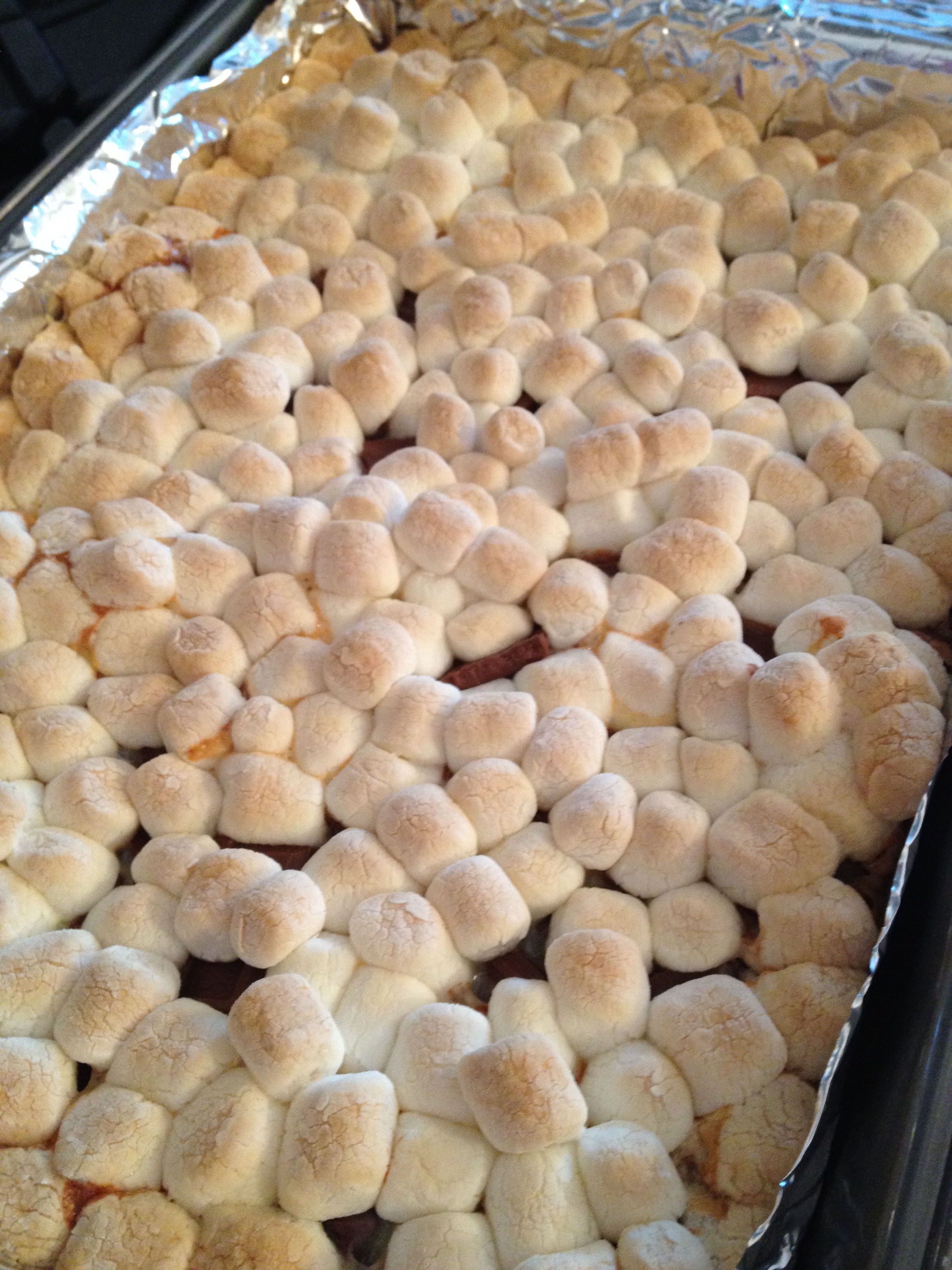 Bake 25 minutes or until marshmallows are golden brown.