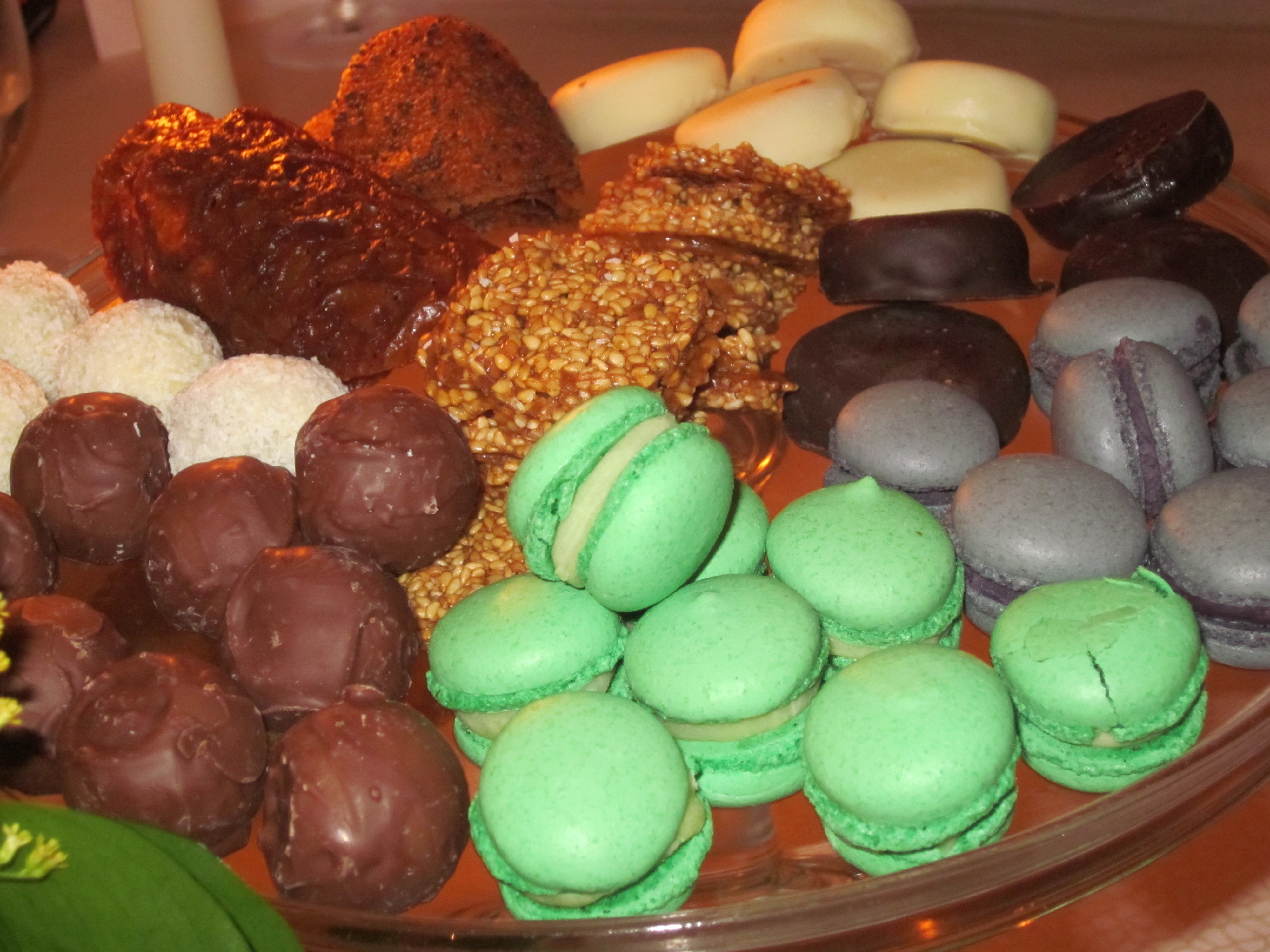 Plate after plate, course after course, the surprises kept coming. That blonde garlic transformed into a coconut soup with tomato water. Tender oil-poached shrimp emerged on a bed of a rosemary-infused apple purée that we helped make. Porcini flan with Dungeness crab and black truffle dashi showed us how good kelp and dried fish flakes can taste. Chilled rhubarb soup with bulgur wheat gelato proved dessert really can be good for you. But most impressive of all was that the engaging Mr. Bouley was right there with us throughout the night, from dashi to mignardises (little sweets presented after the dessert course). Not only did we get an extraordinary, 5-hour long meal, we got an education.