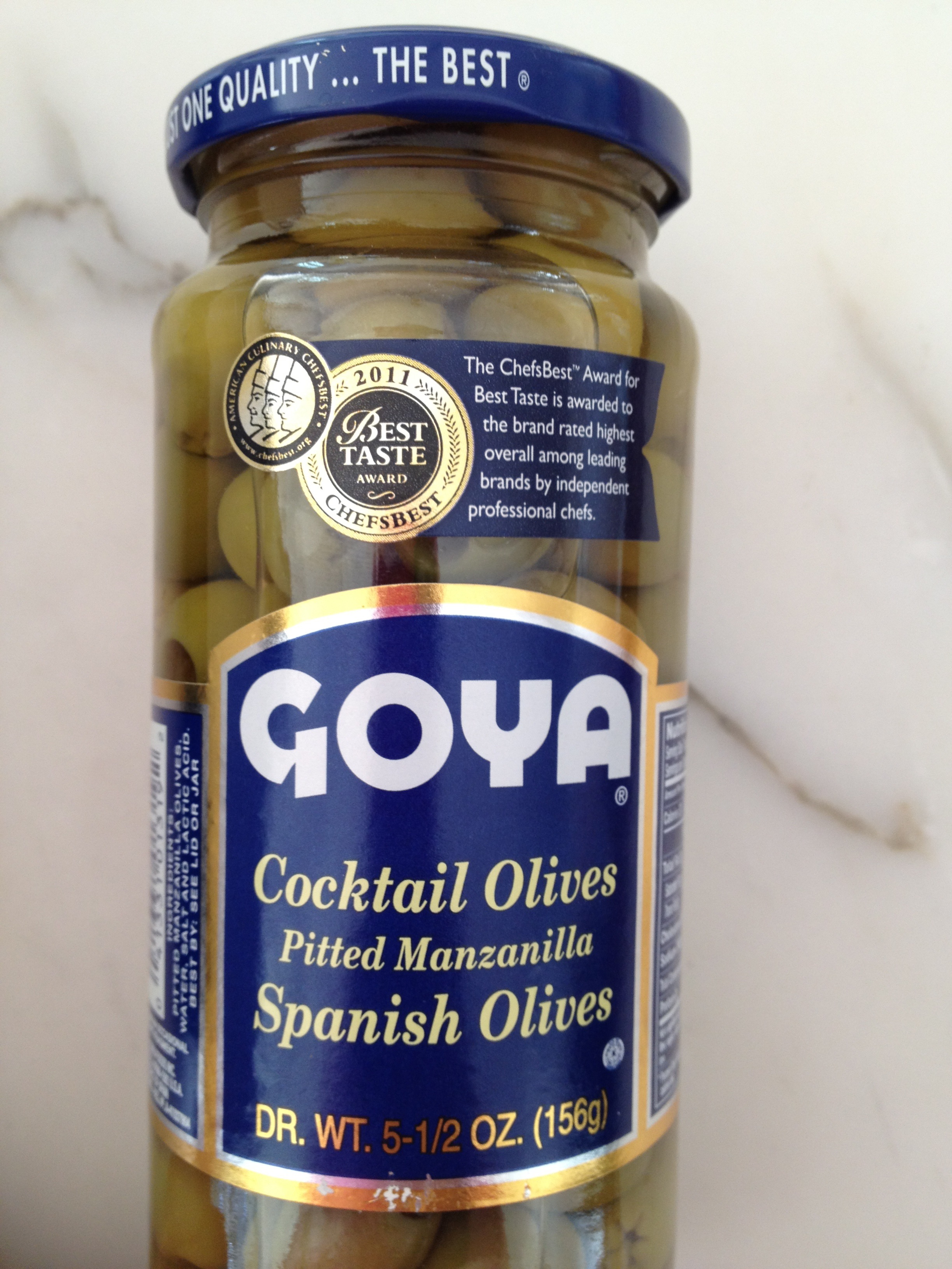 - 1 jar pitted green Spanish olives, drained (approx. 5-6 oz.)