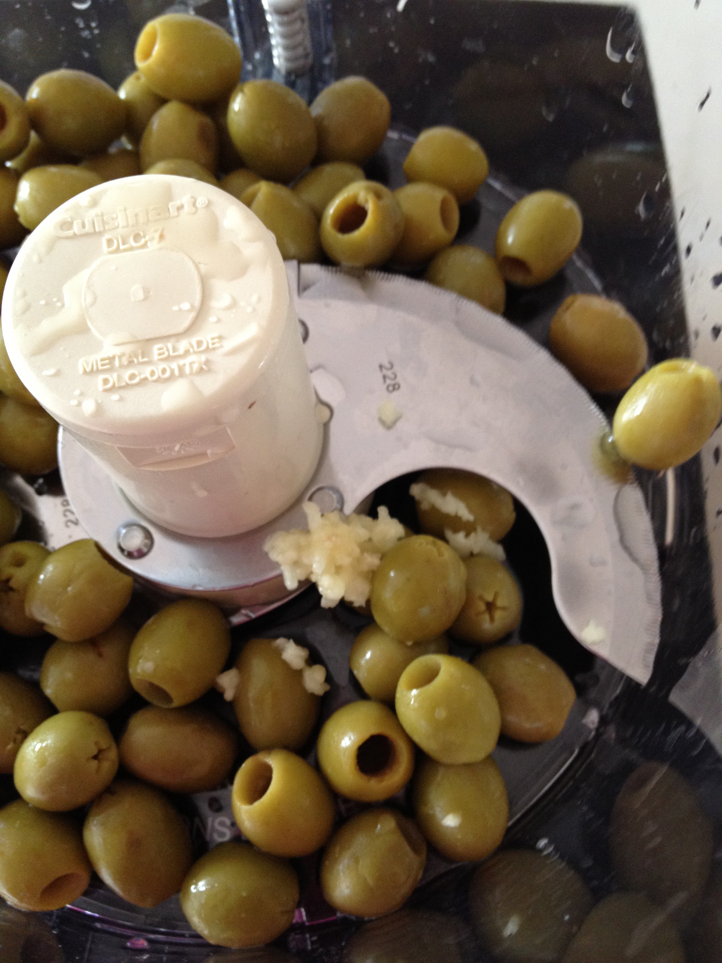 While dates are baking, make the Green Olive Tapenade. (Though it could also be made several days ahead and refrigerated.)