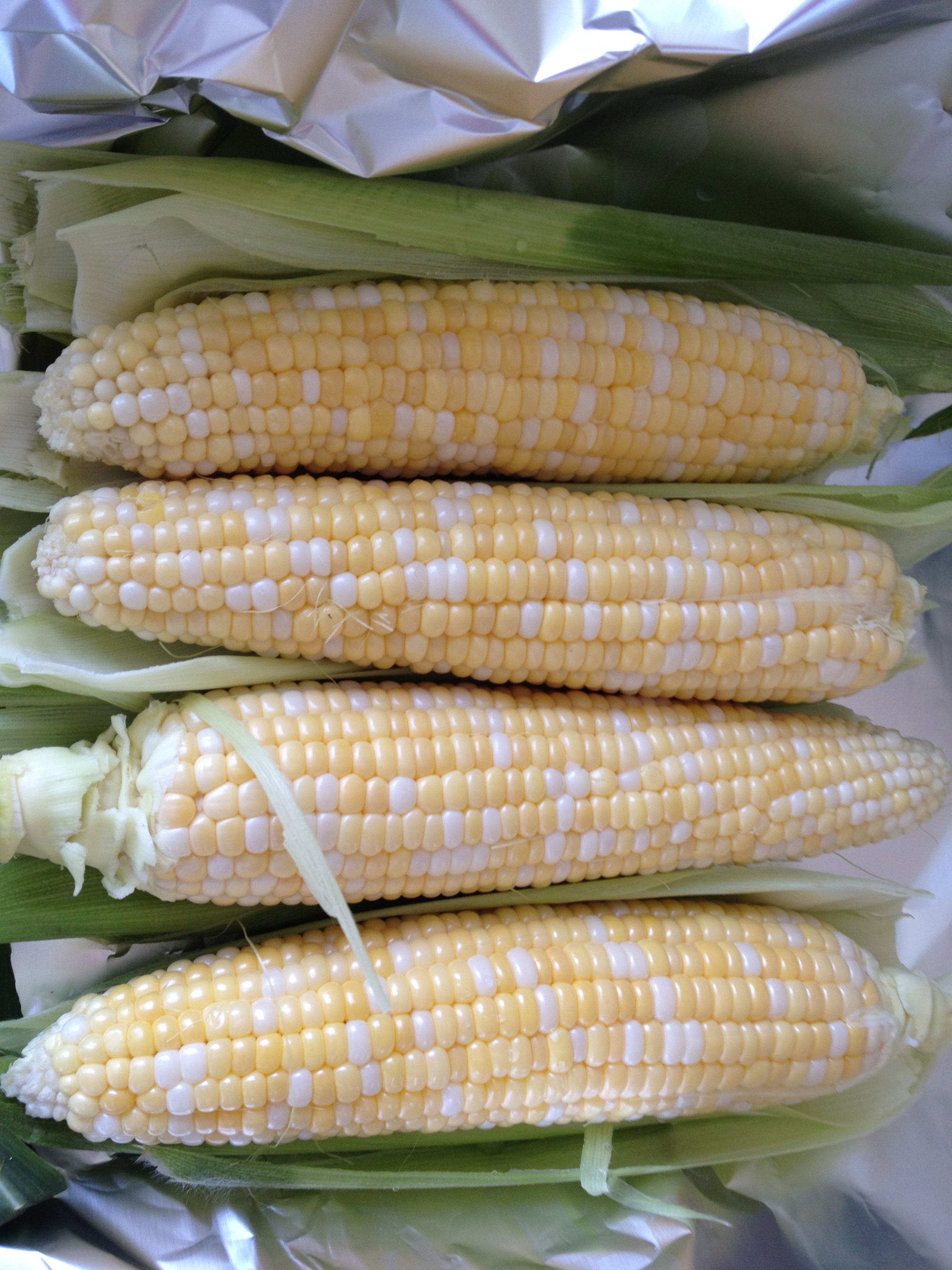• 4 ears corn, shucked (reserve a few husks for grilling)