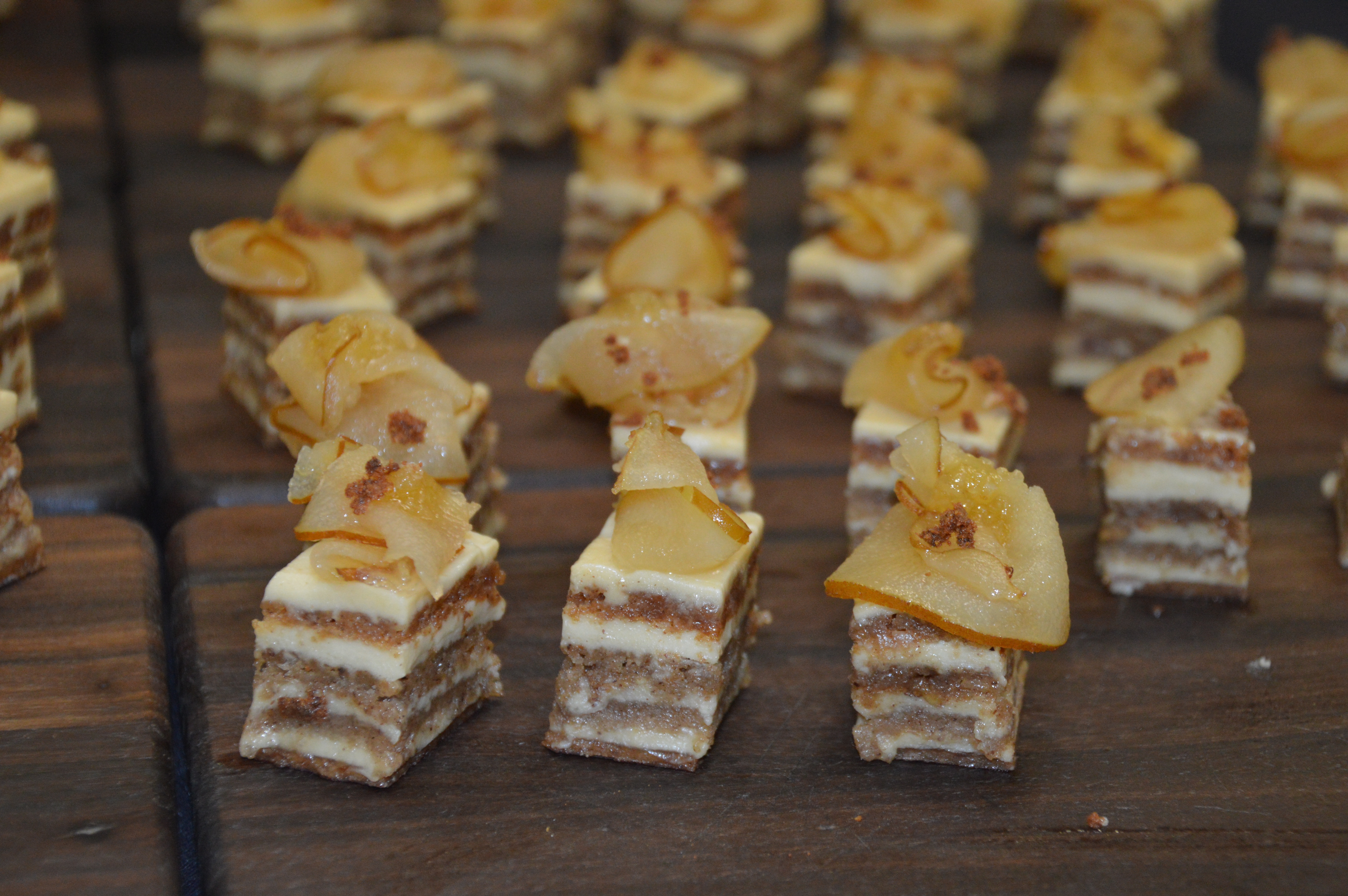 Pecan Frangipane with pecan pie buttercream, caramel poached pears and candied lemon puree. (I might have gone back for seconds. . .)