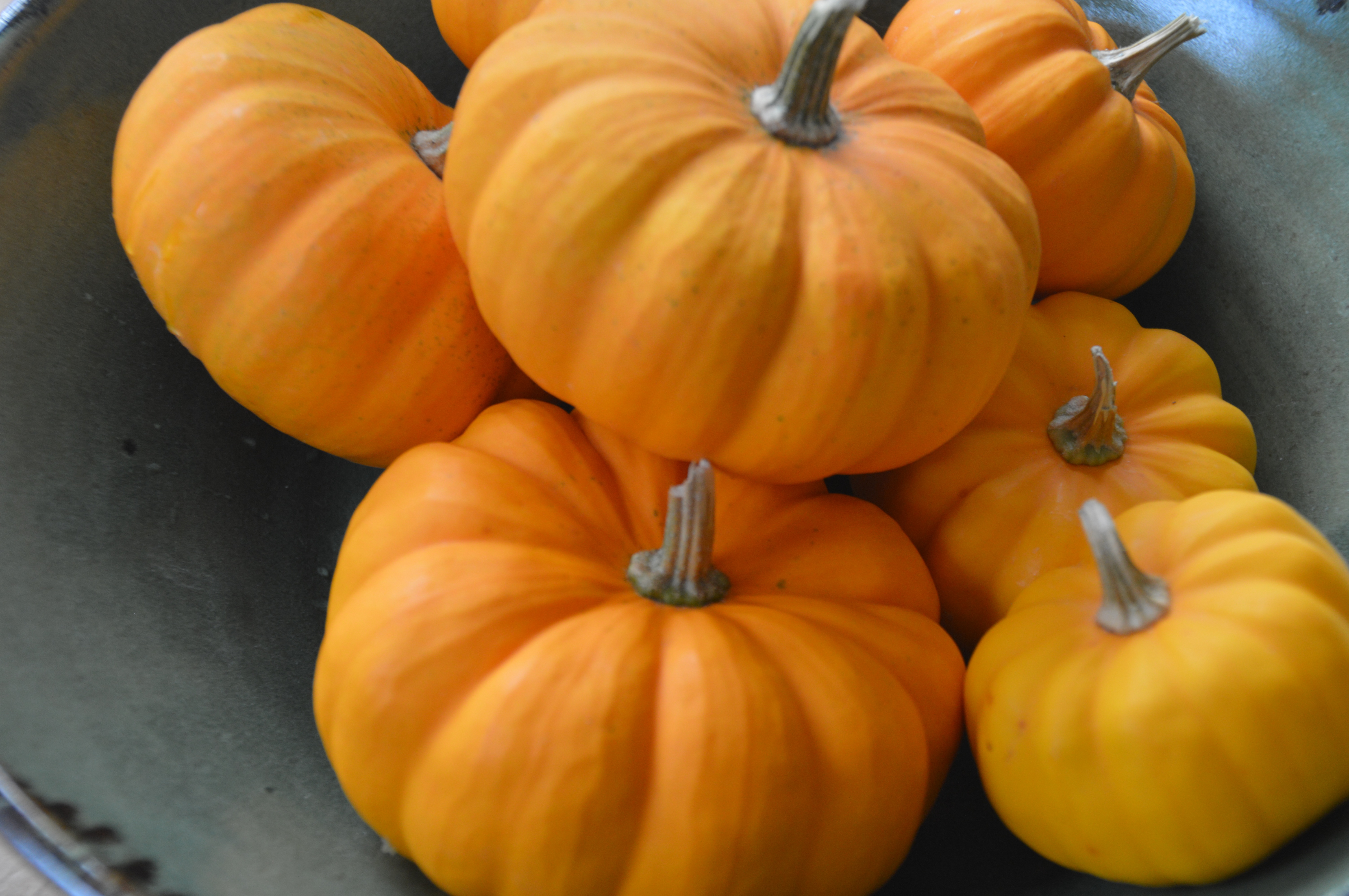 Jack Be Little pumpkins from our garden. We plant them around the perimeter fence and let them climb up and go crazy.