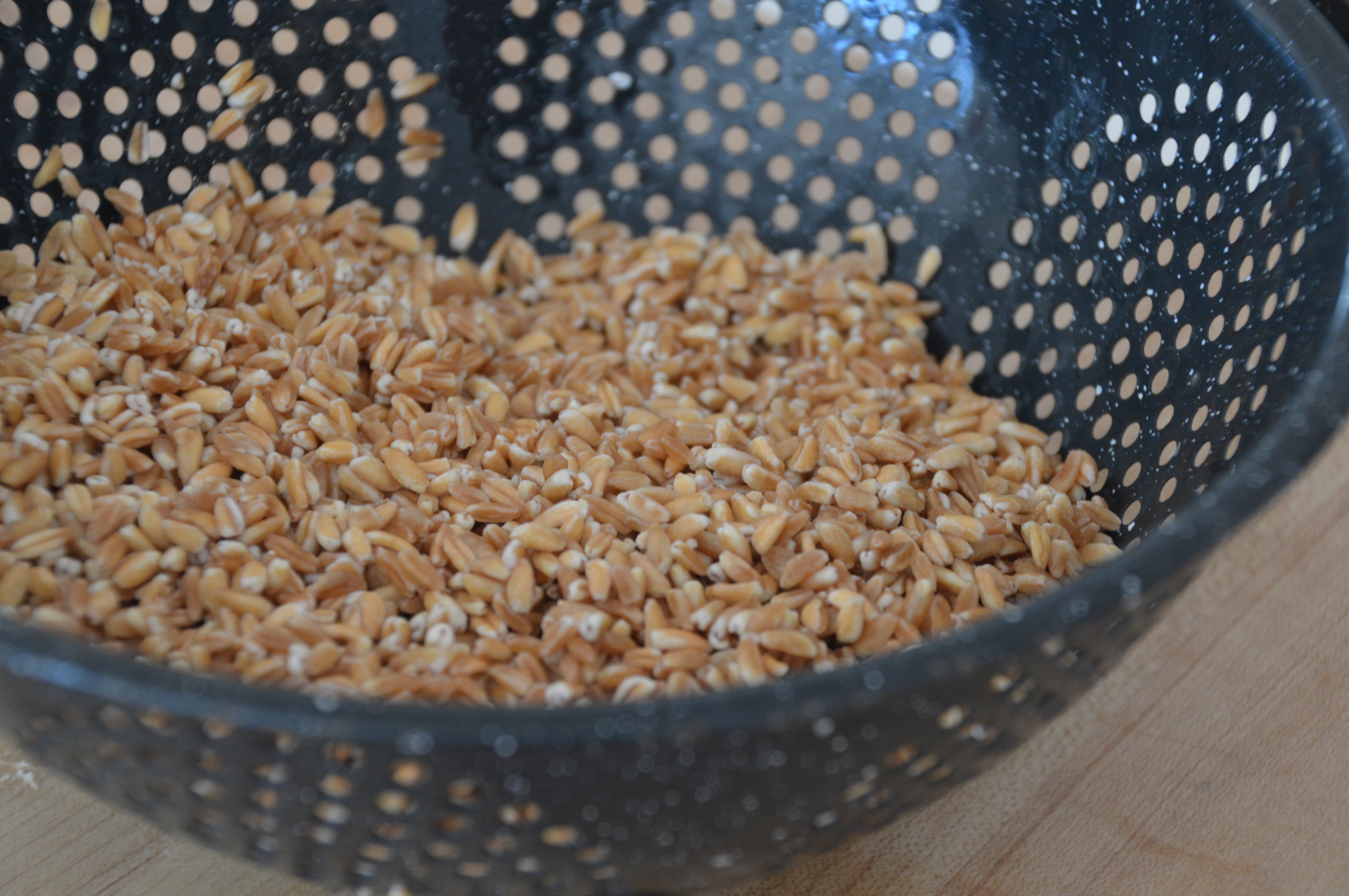 Heat oven to 350F. In a large bowl, rinse farro in cold water; drain.