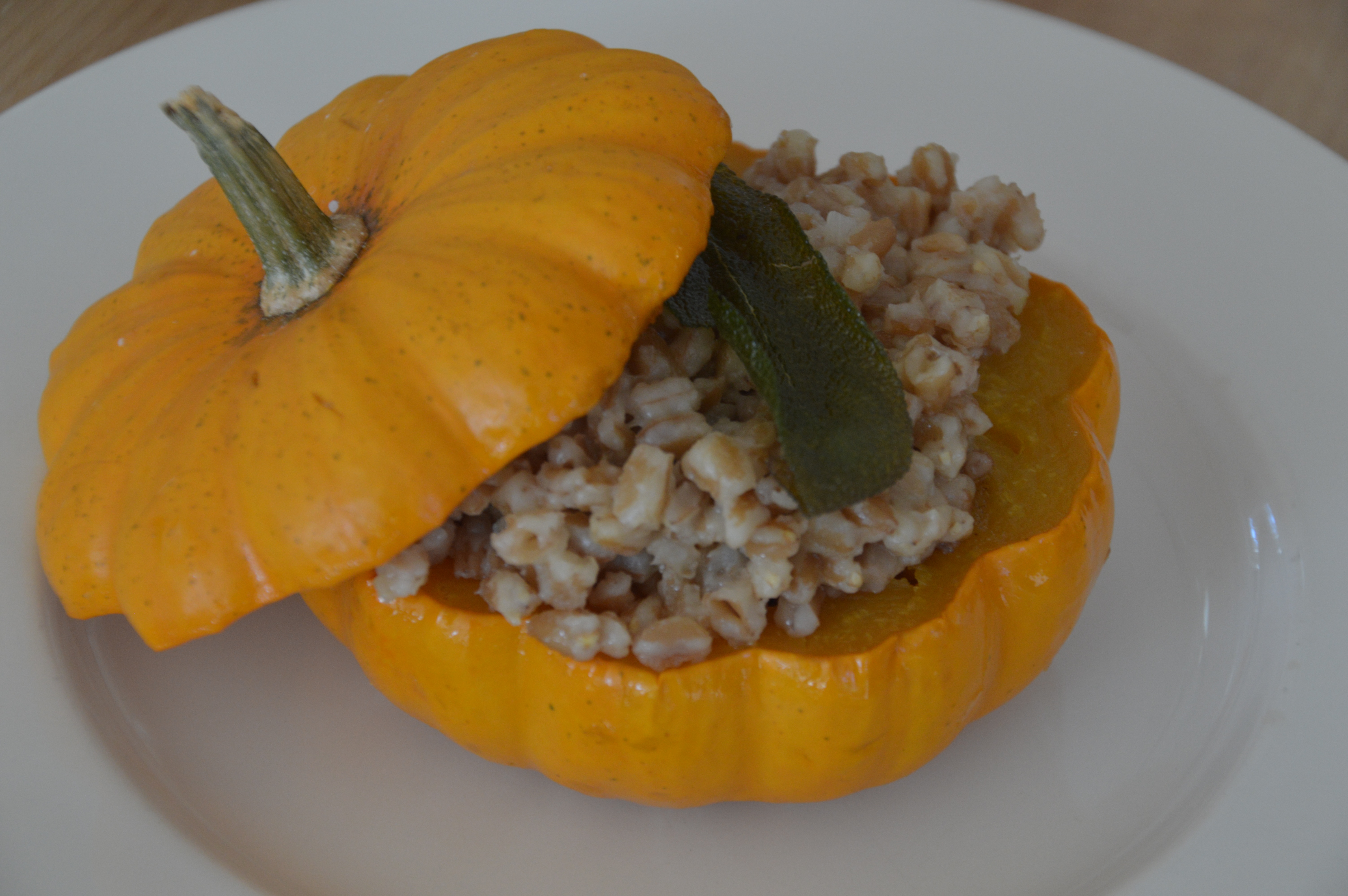 Mini Pumpkins with Farro Pilaf and Crispy Sage