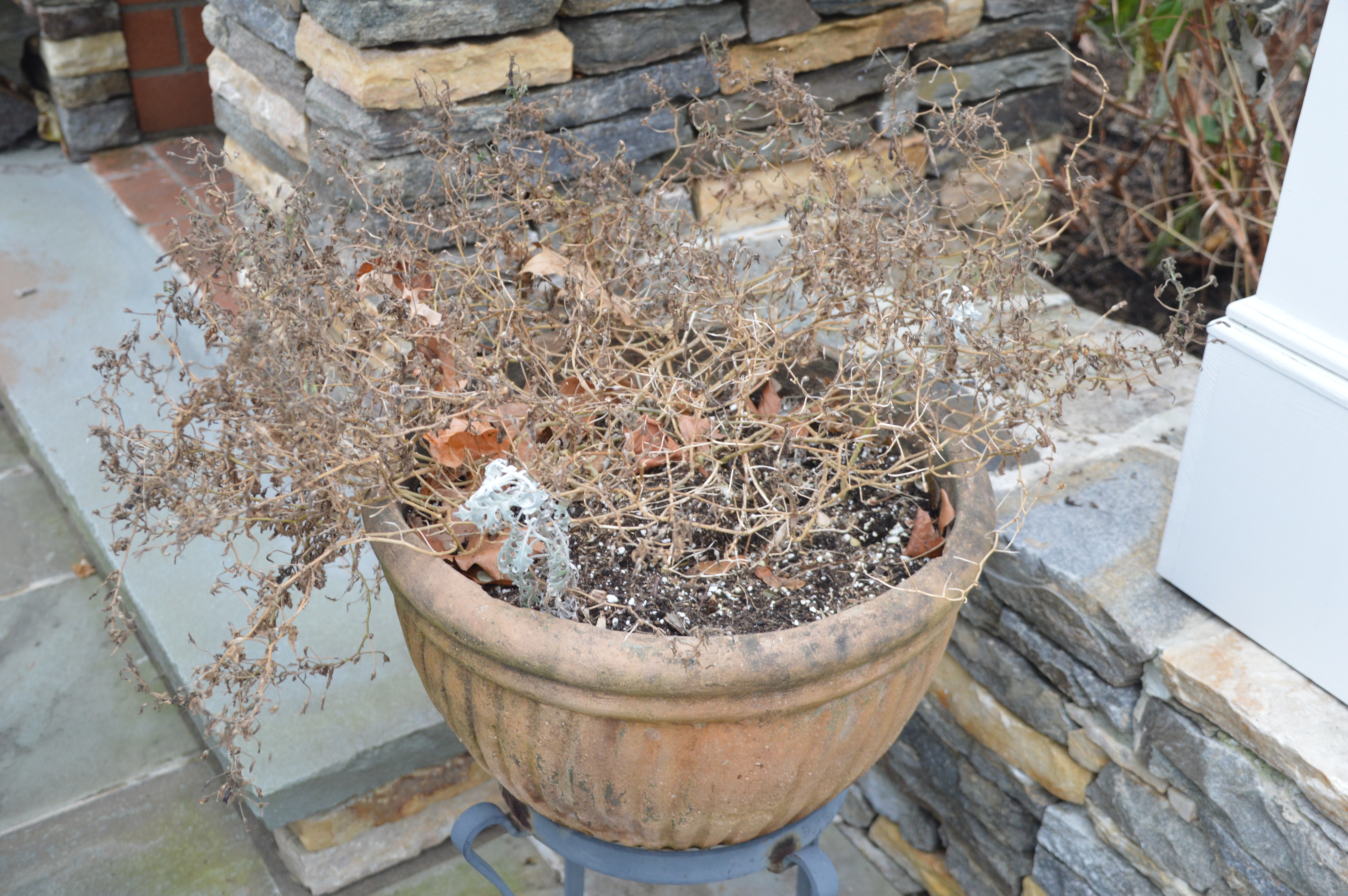 Because this pot should not stay outdoors all winter, I move it to a more protected location for the month of December.