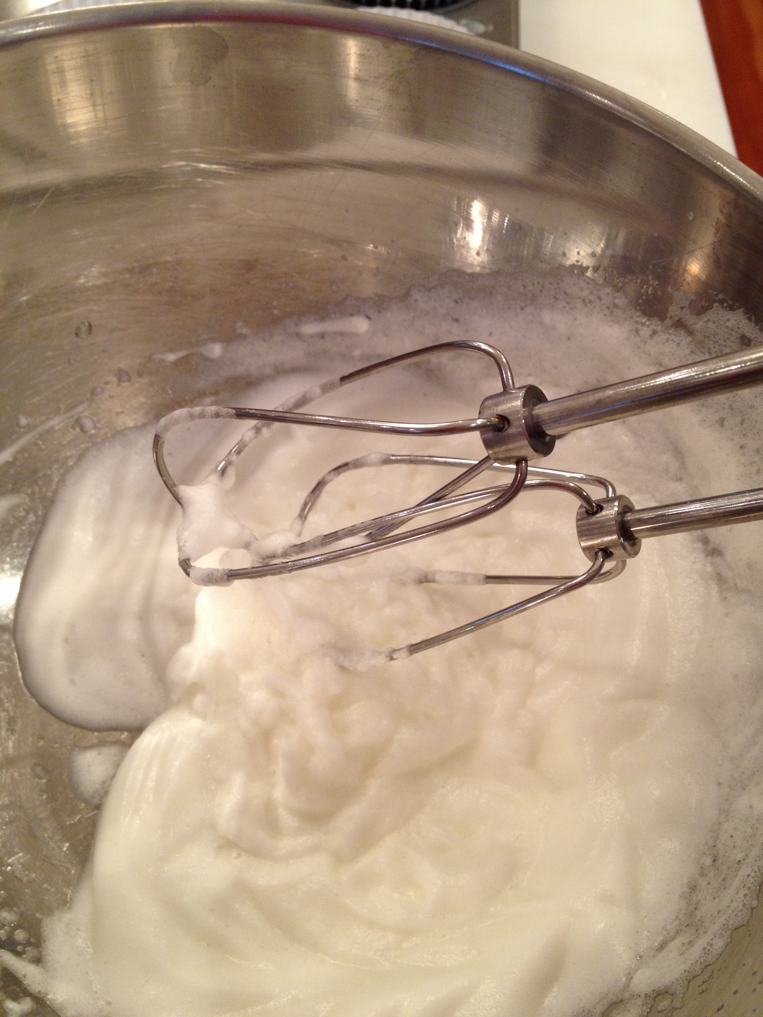 In another small bowl, beat the 2 egg whites until stiff peaks form.