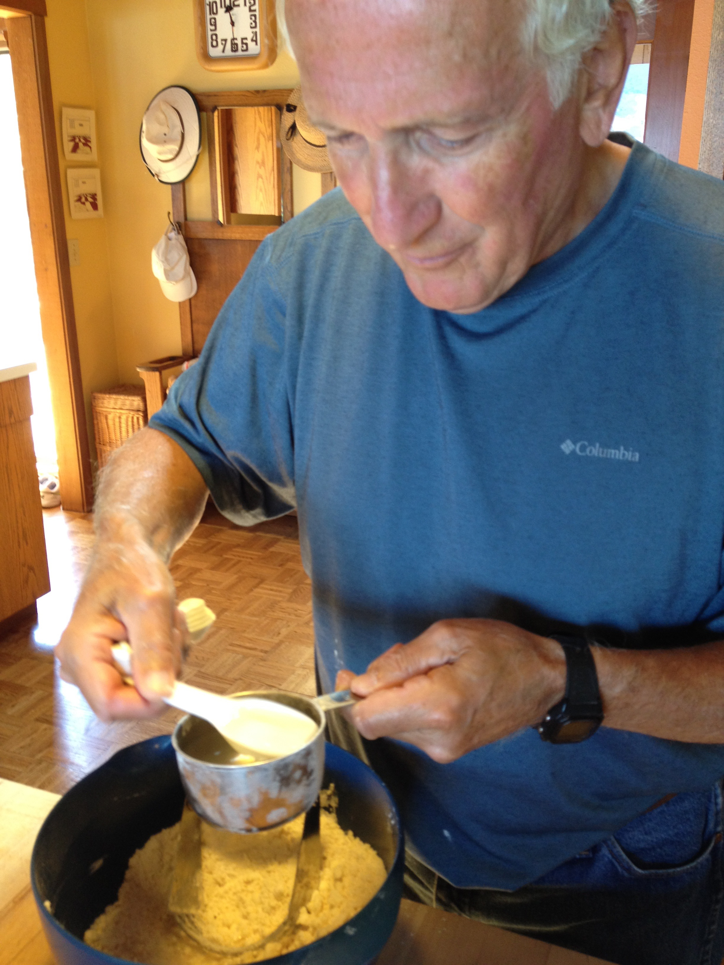 Dad picking pie-perfect Cascade berries  from his backyard garden.