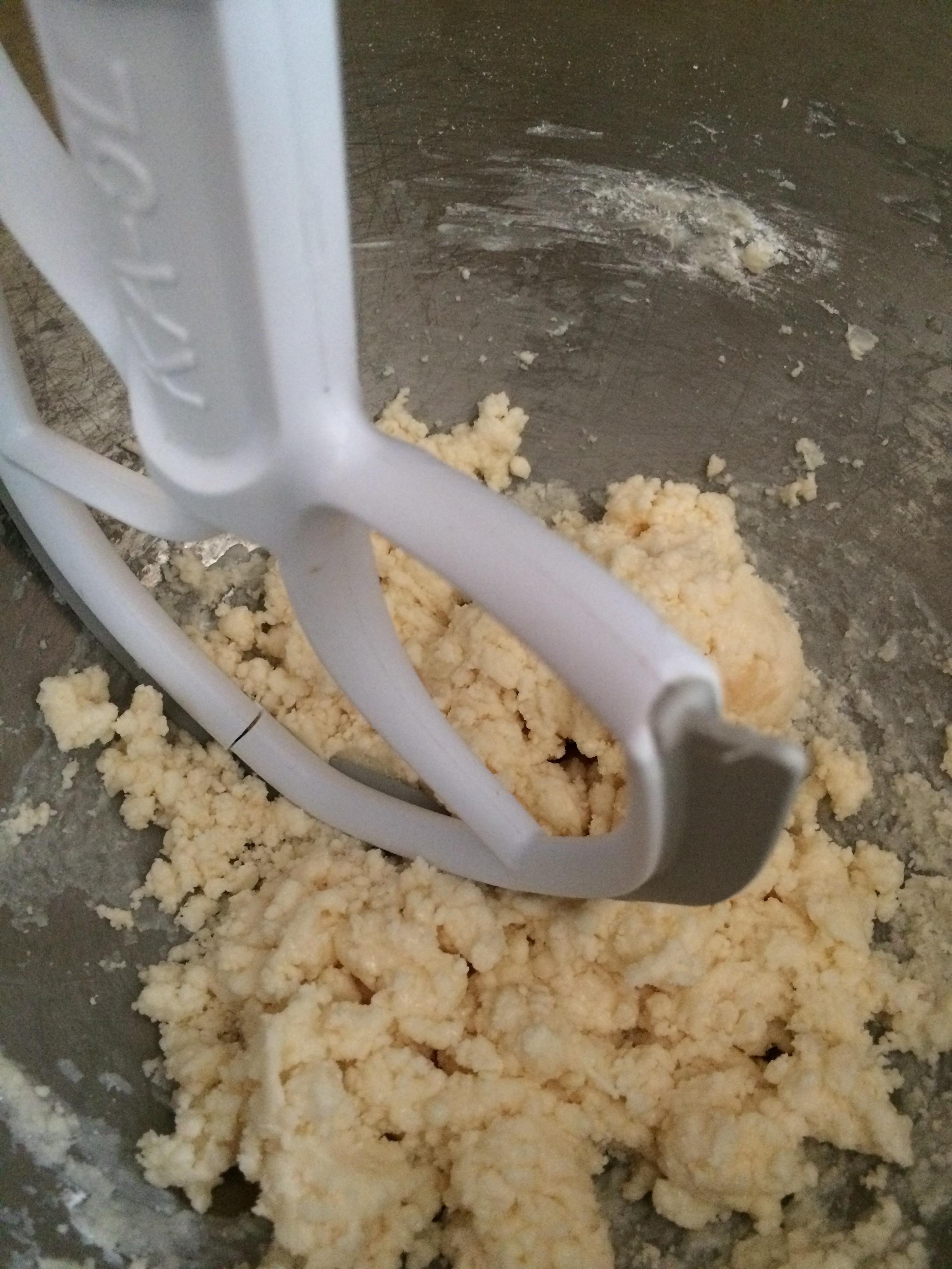 To the bowl of a standing mixer fitted with a paddle blade, add confectioner’s sugar, butter, peppermint, and vanilla. Starting on low (to avoid a shower of powdered sugar) and increasing to medium and beating until mixture starts to come together.