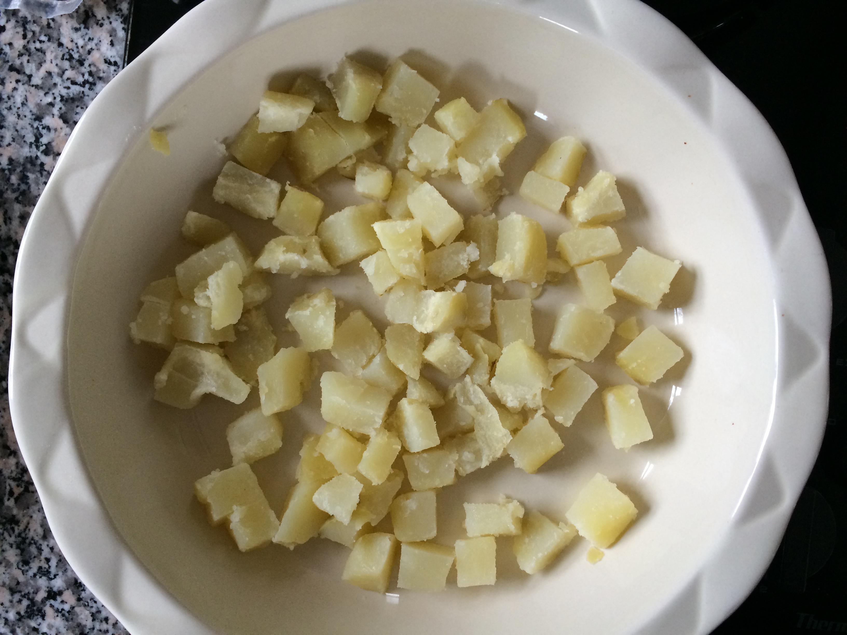 • 1 russet or Yukon gold potato, cooked and cut into ½” cubes (leftover or steamed)