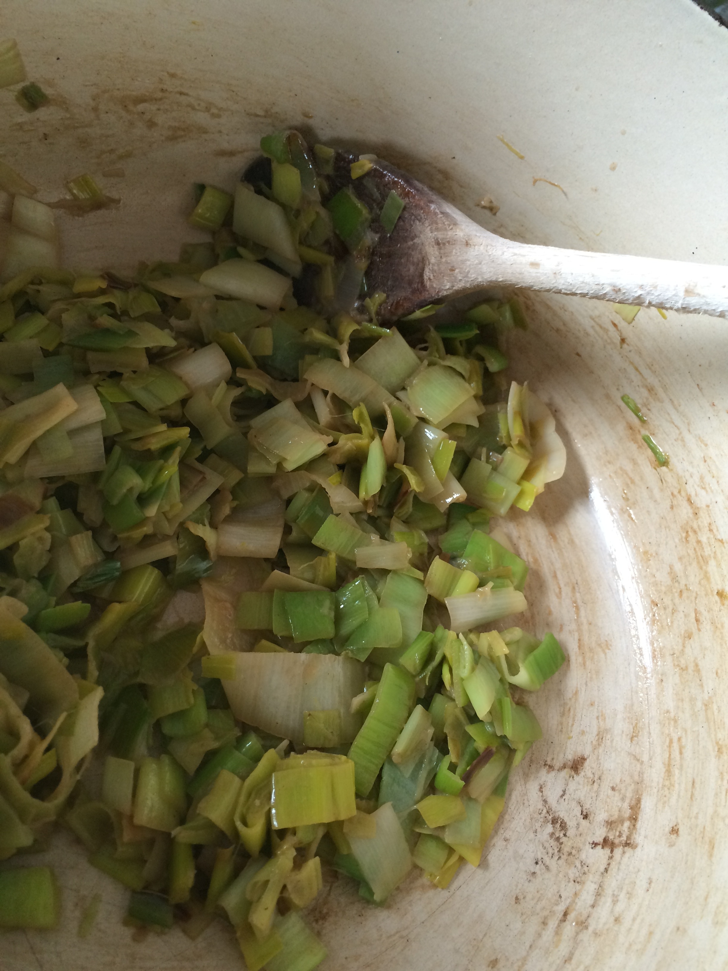 Just let the softened leeks hang out in the covered pot to make sure they’re good and tender.