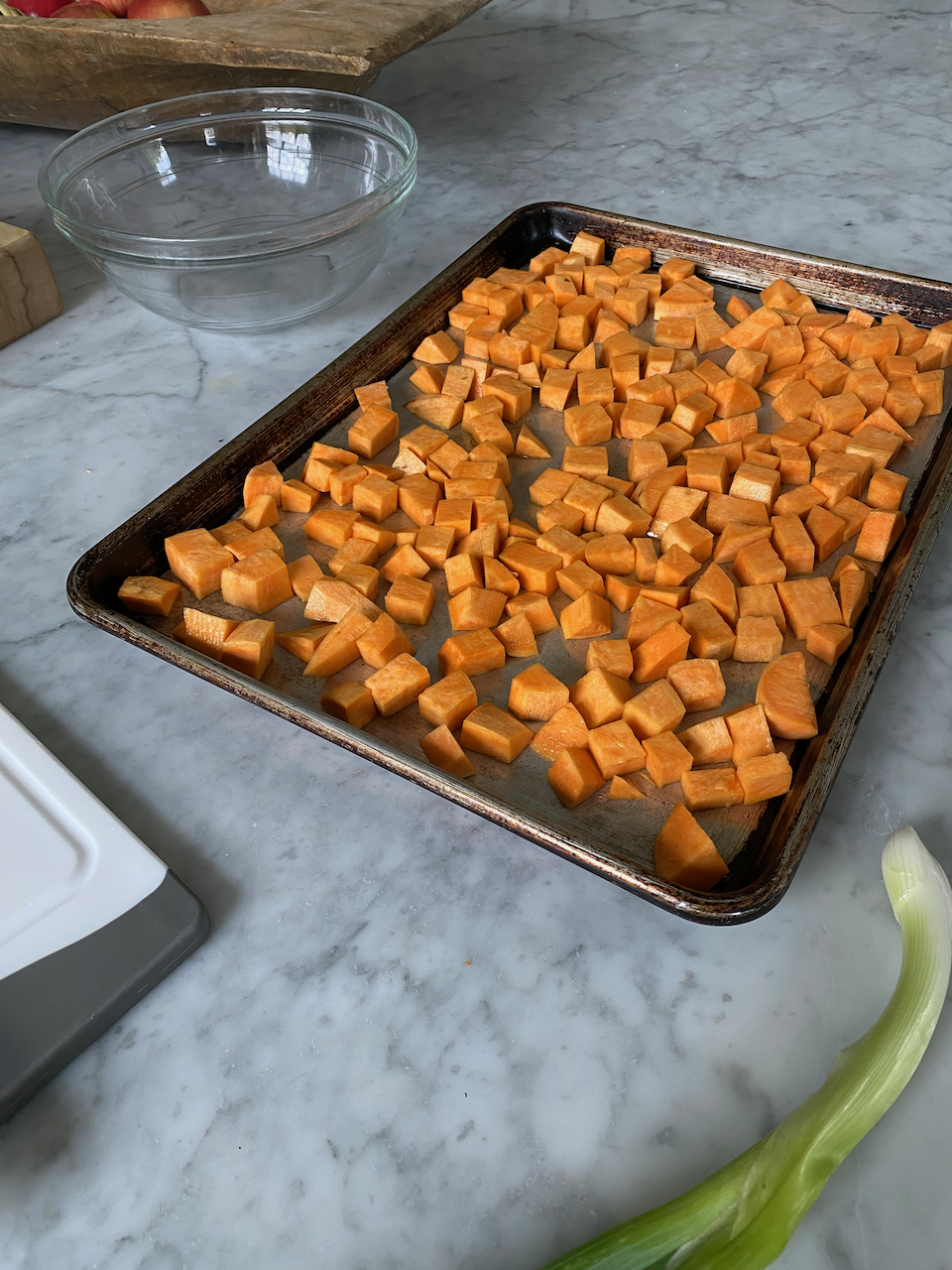 • 1 large sweet potato, peeled and cut into ½” cubes