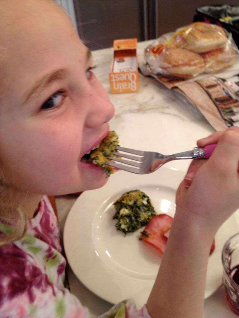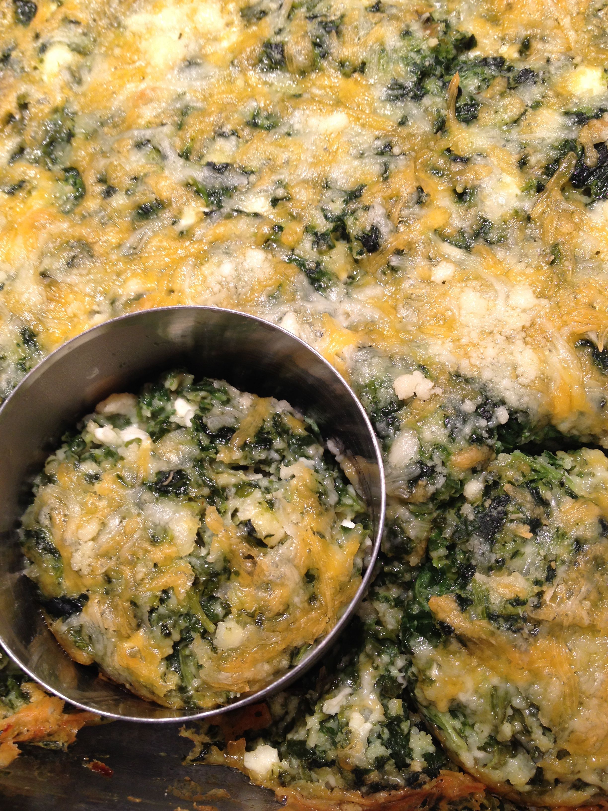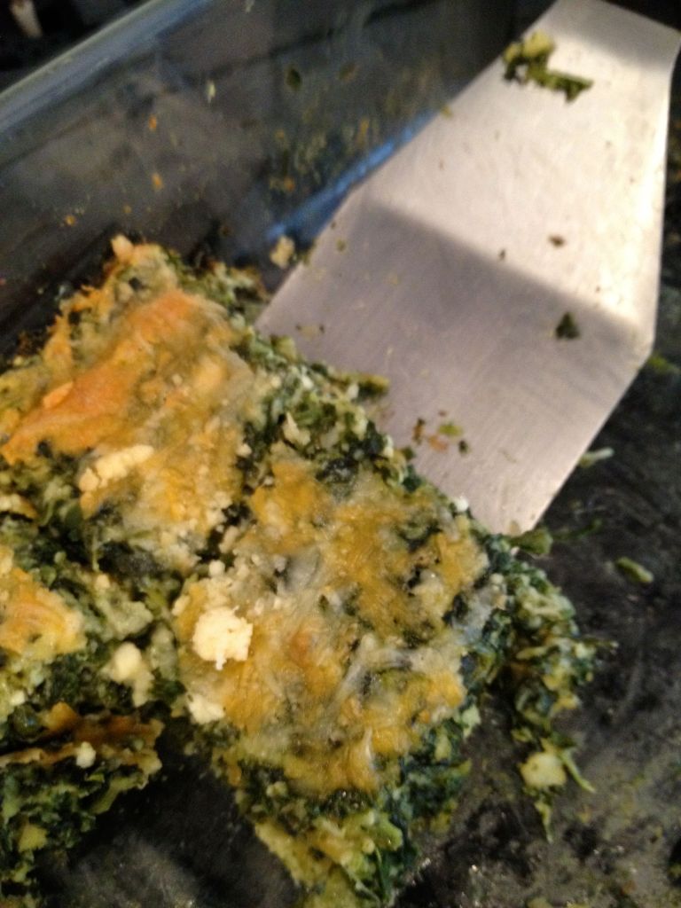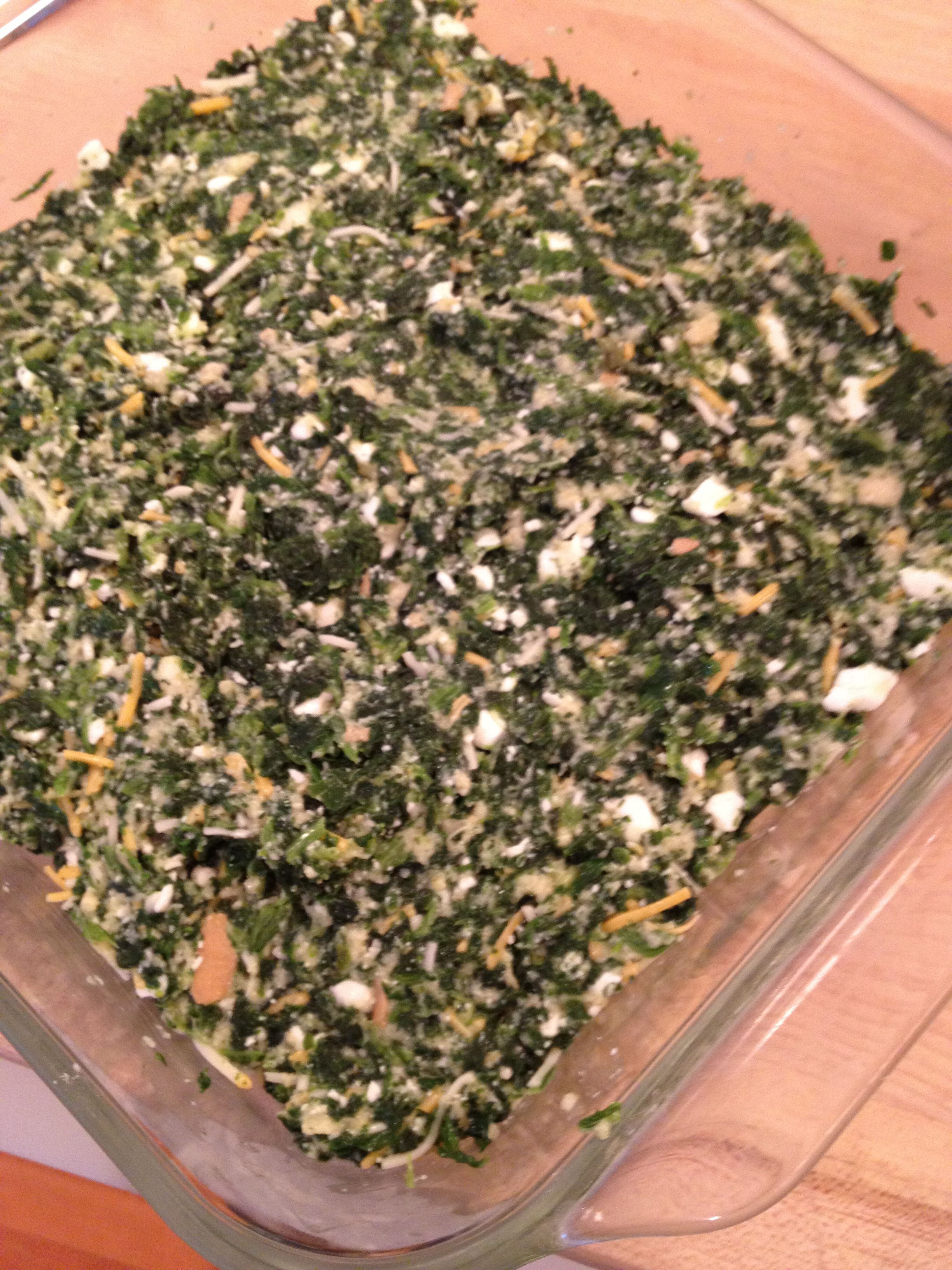 Dr. Seuss’s birthday is getting a lot of play this year (thanks to “The Lorax” release today), so I expect there will be quite a few green eggs and ham on breakfast menus this weekend. Food coloring’s one way to go, but this morning I thought I’d capitalize on all the marketing to help sneak some spinach into my kids’ diet. Auntie Jo’s famous spinach frittata was the perfect, all-natural Green Eggs vehicle. It also happens to be a great lunch, brunch or open house dish, because it can be served hot, cold or at room temperature. This recipe is sort of a hybrid between a frittata (open-faced omelette) and a strata (casserole made with bread & eggs); I think it’s easier to make than both. Auntie Jo’s frittatas always seem to taste a little better than mine – most likely because recipes that are passed along from person to person sometimes suffer from the “telephone game” fate. (That, or she has accidentally omitted a secret ingredient . . . ) Nonetheless, this is an easy and tasty recipe worth trying.