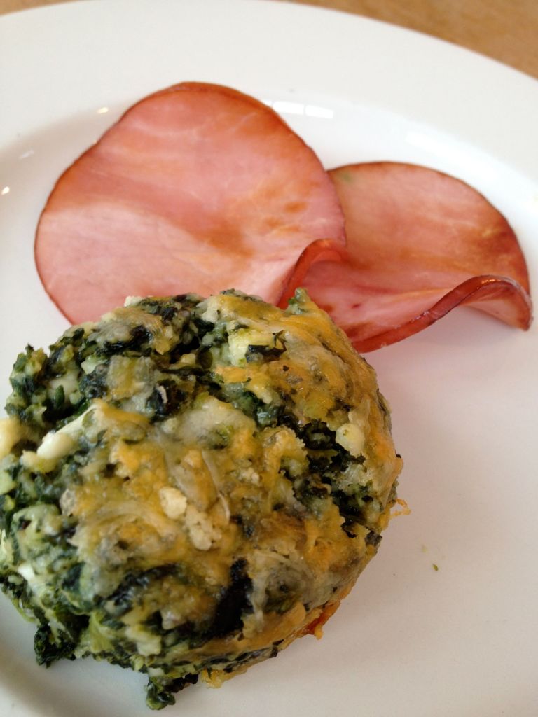 This morning I used a biscuit cutter to cut a few pieces into circles; you could also get crazy and scoop some into cleaned out egg shells. [The ham is Canadian bacon, quickly warmed/browned in a nonstick skillet.]