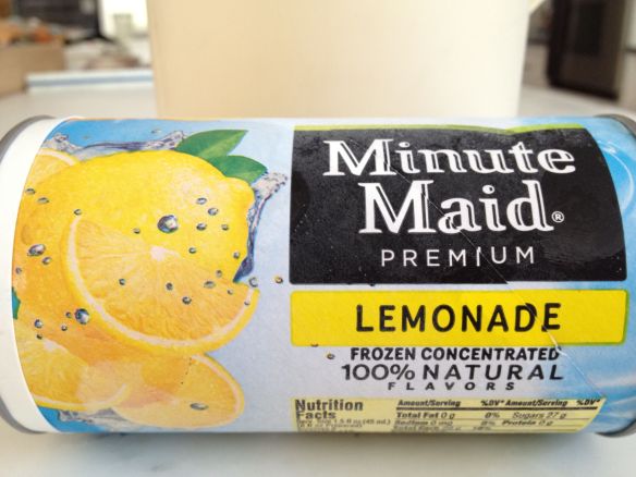 When life gives you 100-degree days, make lemonade. To do so you could squeeze a ton of lemons, strain out the seeds, boil some sugar and water to make simple syrup, mix it all together and make a mess of your kitchen in the process, OR – you could grab a can of MinuteMaid frozen concentrate from the freezer, add it plus 4 1/3 cans of water to a pitcher and end up with almost the same thing in less than one minute. Sold!
