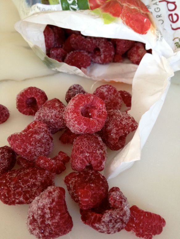 During the course of this shoot we learned that frozen raspberries also make a great summer snack!