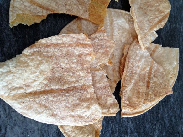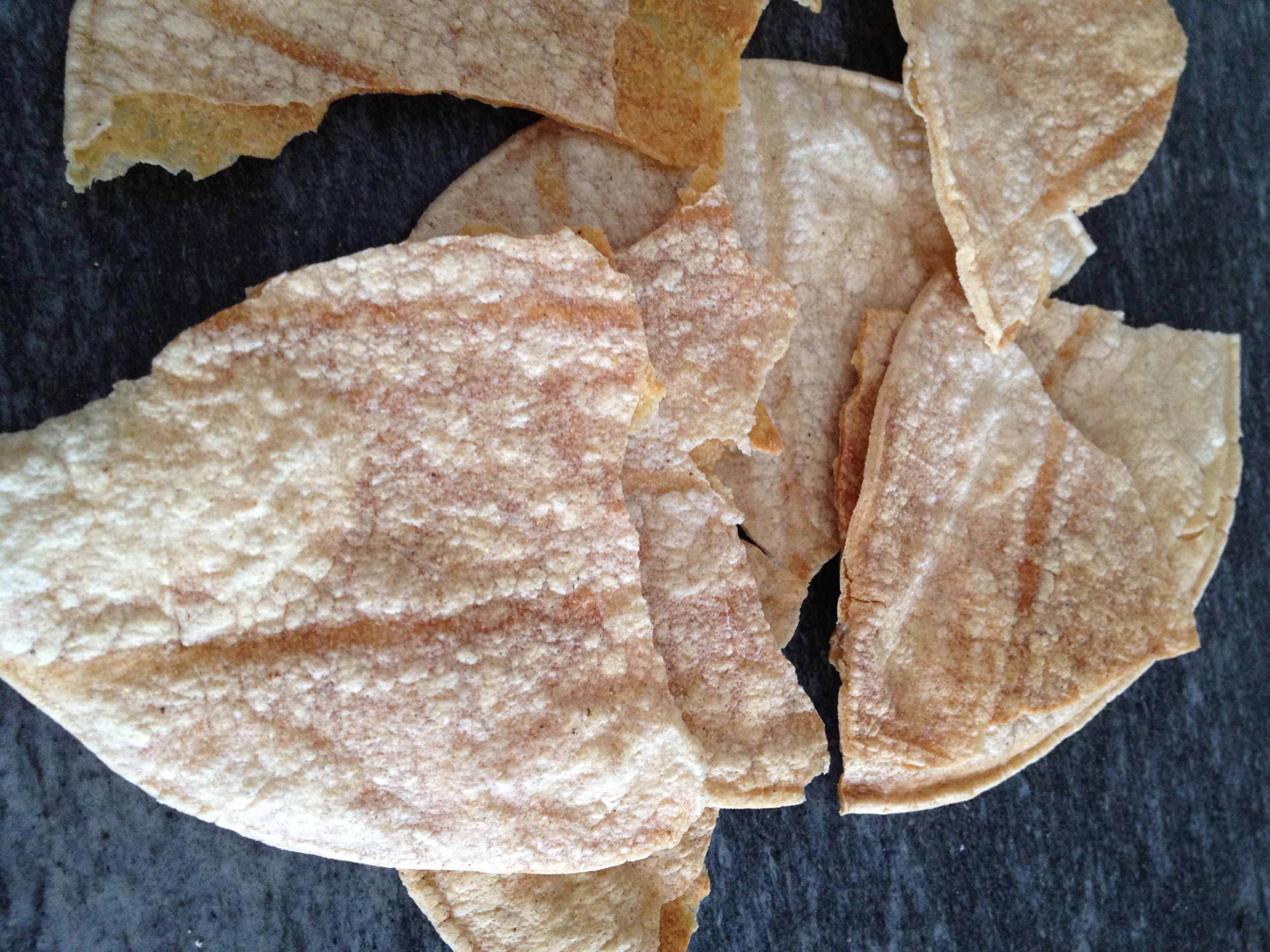 Heat oven to 350ºF. Arrange tortillas directly on oven racks. (One tortilla will make 4 large chips; toast as many as you like or will fit in your oven.)  Bake for 10 minutes; check and rotate tortillas if necessary.) Bake an additional 5 minutes or until tortillas are golden brown. Remove from oven to cool. Break each tortilla into 4 large chips. Store in airtight container if not using right away. Will keep for a long time; I’m not sure how long because the kids usually eat them all within a day.