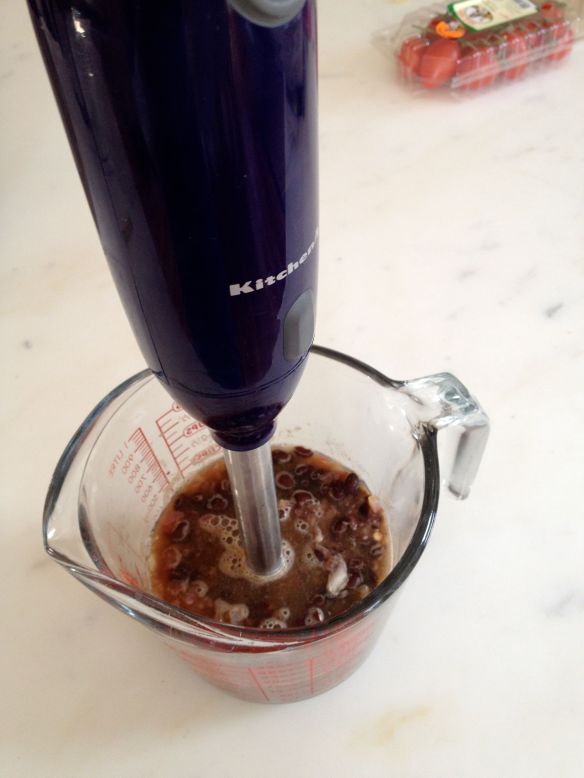Using a stick/immersion blender, blend until smooth (adding a little extra water if necessary). (You could also use a food processor.)