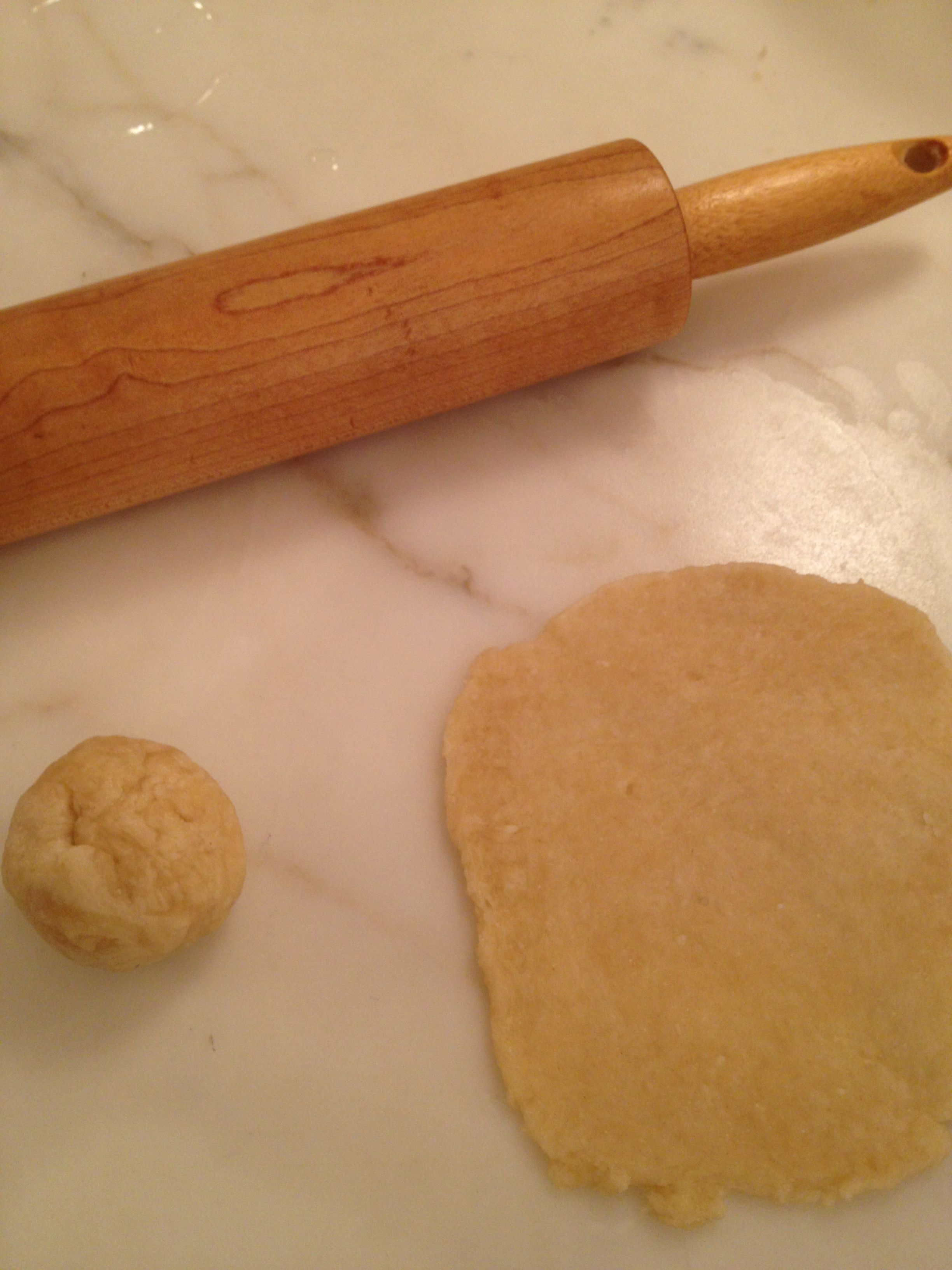 If using homemade dough, shape into walnut-sized balls. (You should get about 40.) With a rolling pin, roll dough flat into 3”- 4” circles.