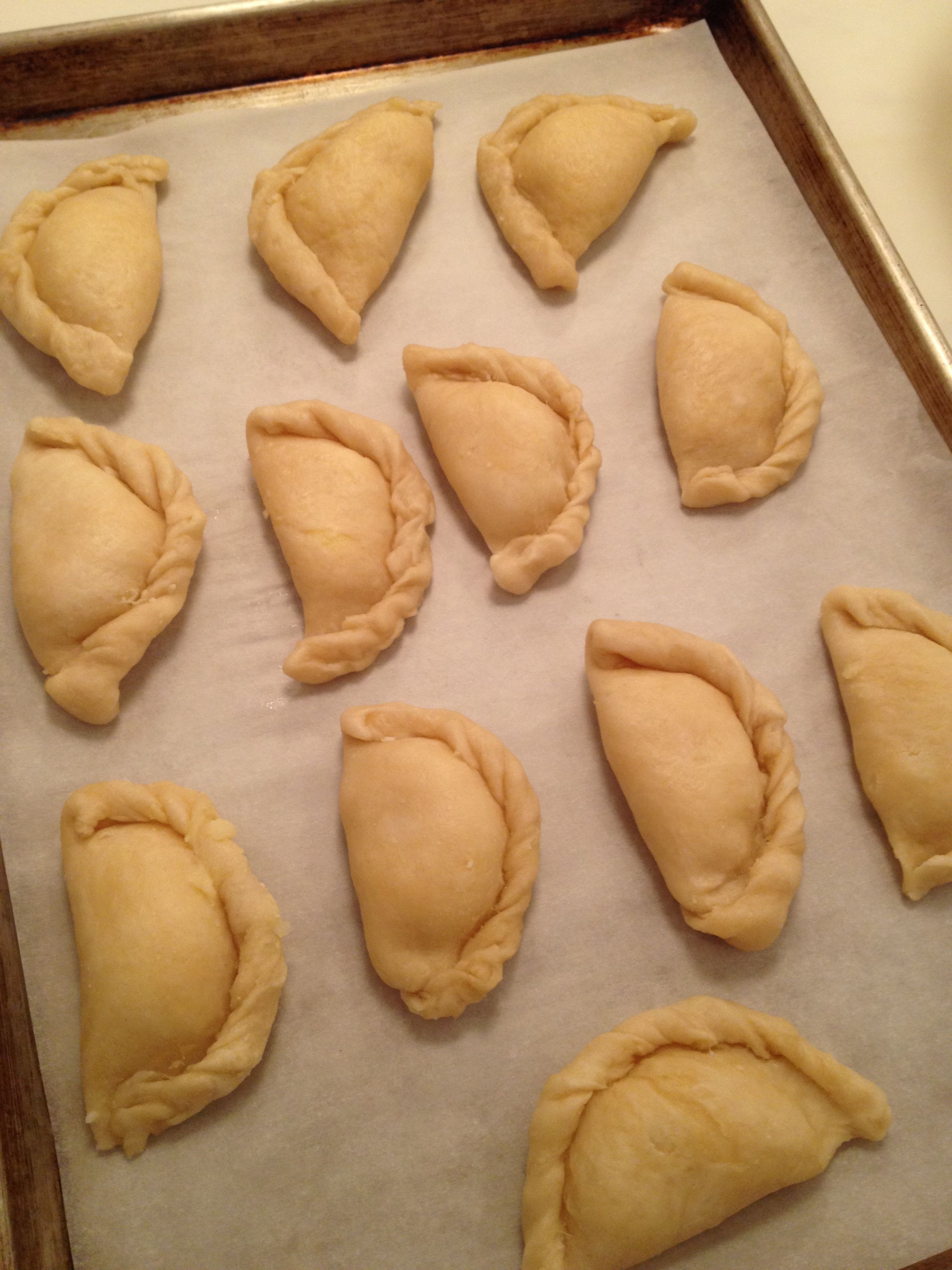 Bake at 400ºF for 12-20 minutes (depending on type of dough used, size of empanadas and whether they were frozen), until golden brown.