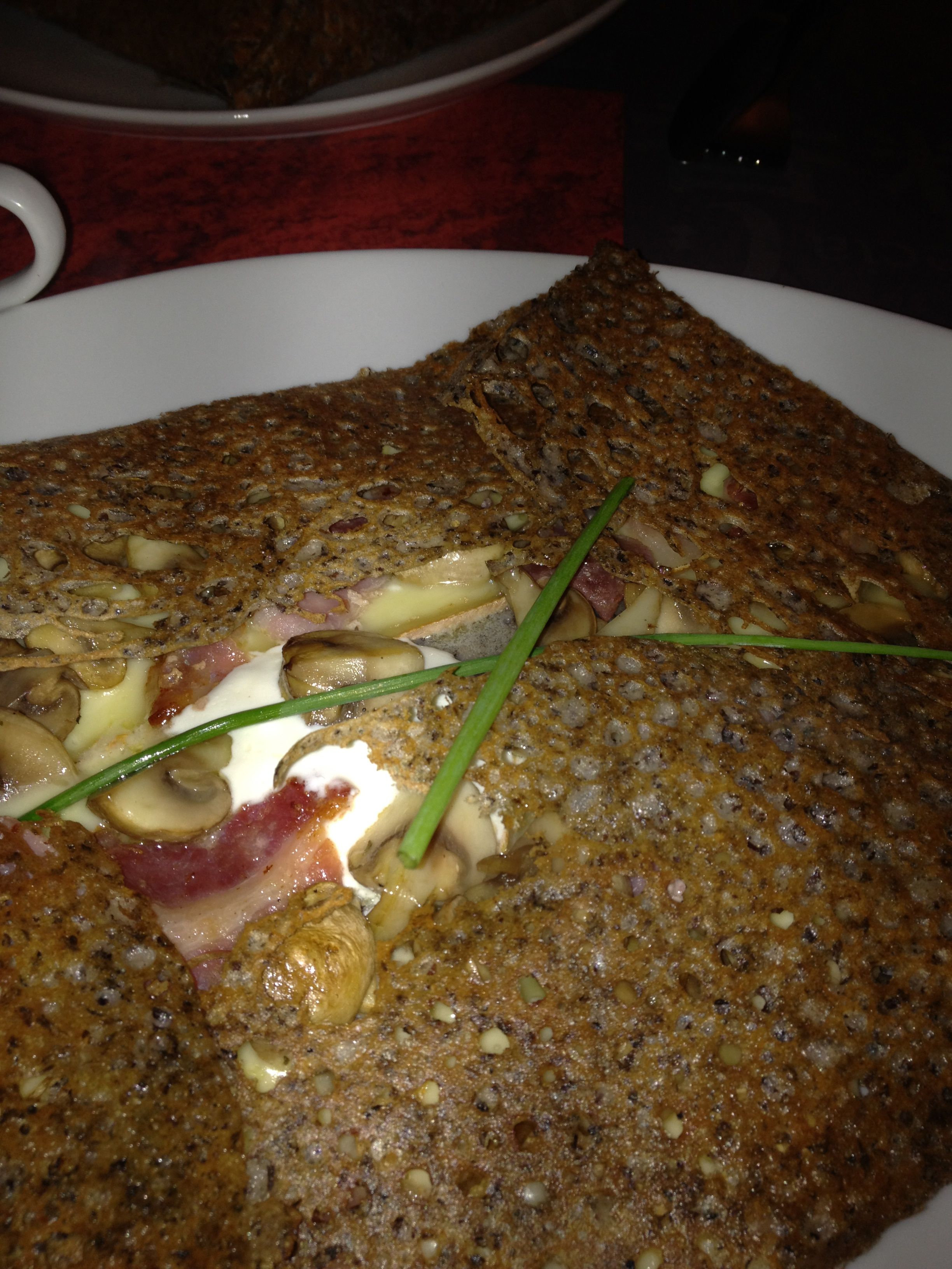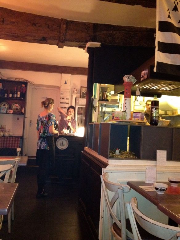 Little Breizh is a small, homey crêperie on the Left Bank. Despite being listed as one of the top Paris restaurants on TripAdvisor.com, there were still a couple of French people dining here. Crisp, lacey buckwheat crêpes with any fillings you like. Mine had bacon, raclette cheese, mushrooms and crème fraiche. So good my friend Kelly ordered it as her dessert crêpe! (Gena and I went more mainstream with chocolate and salted caramel sauces and vanilla ice cream.)