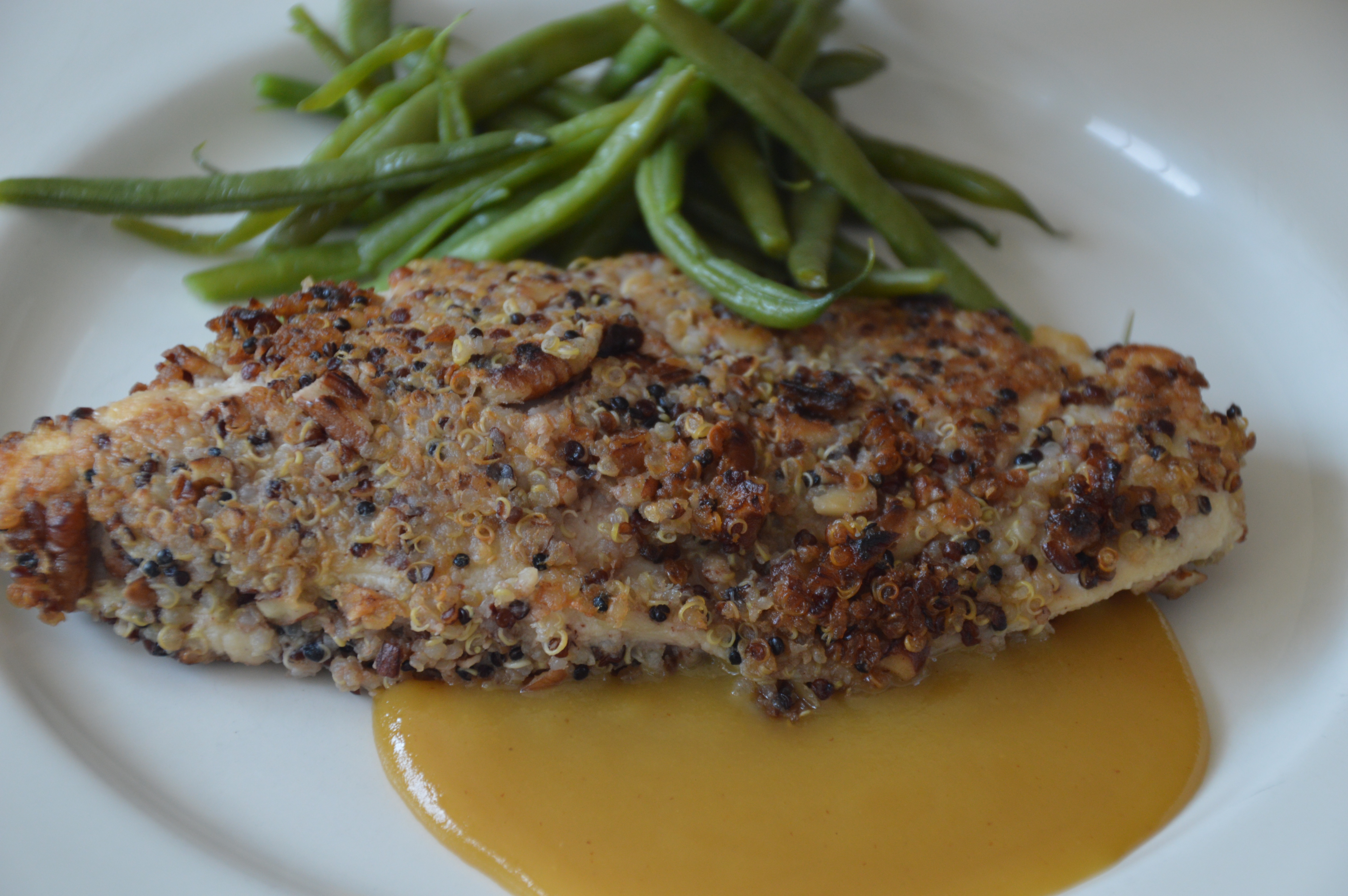 Quinoa and Pecan-Crusted Chicken with Maple Dijon Sauce