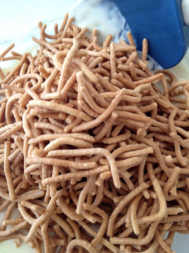 Enter Noodle Nests – salty-sweet little nests made from chow mein noodles and white chocolate chips. I didn’t invent this recipe, but maybe I’m the first one to fill the nests with pastel “M&M’s”® candies? (I swear I’m no longer on the Mars payroll, but – ahem – perhaps I should be?)