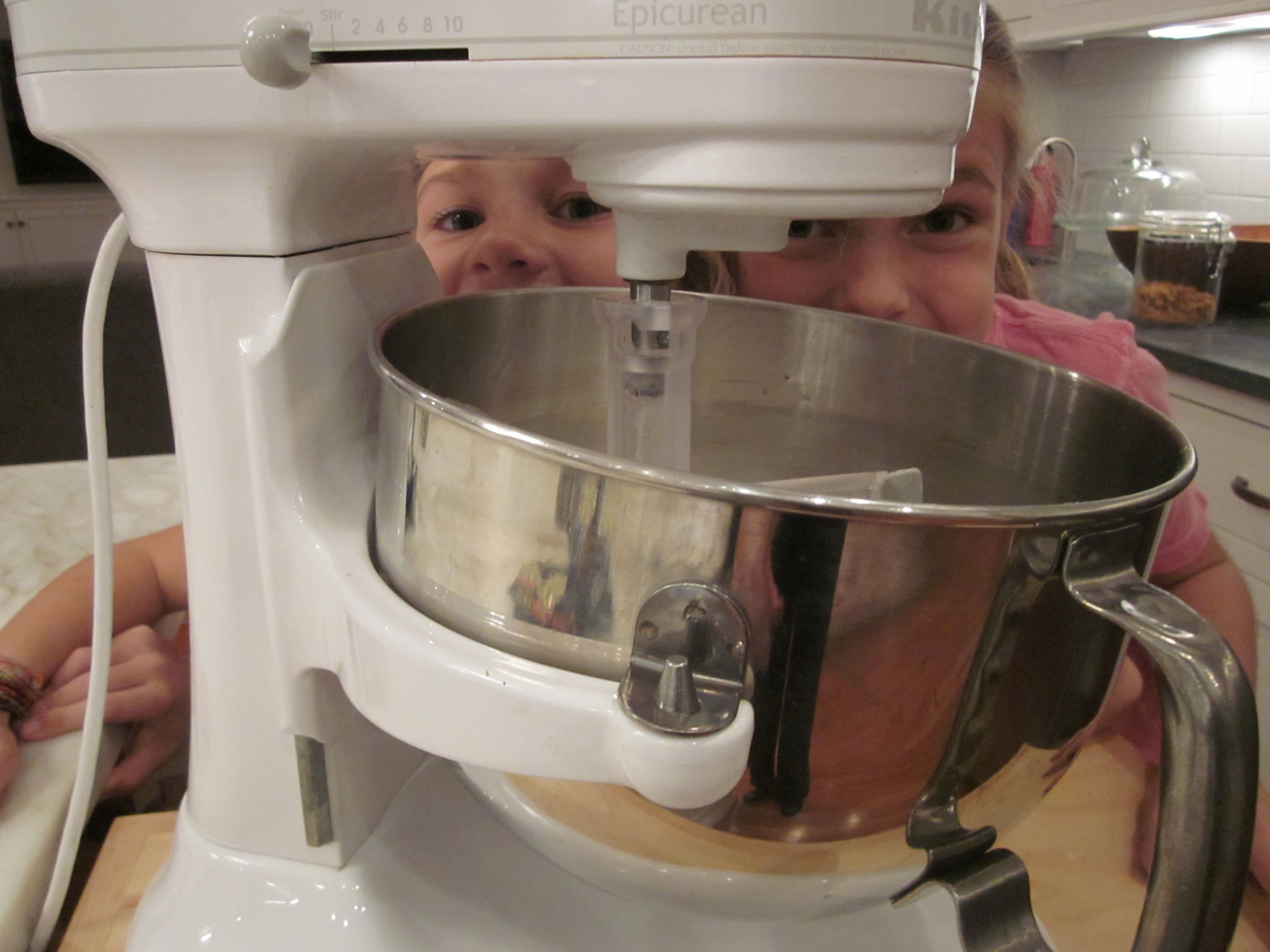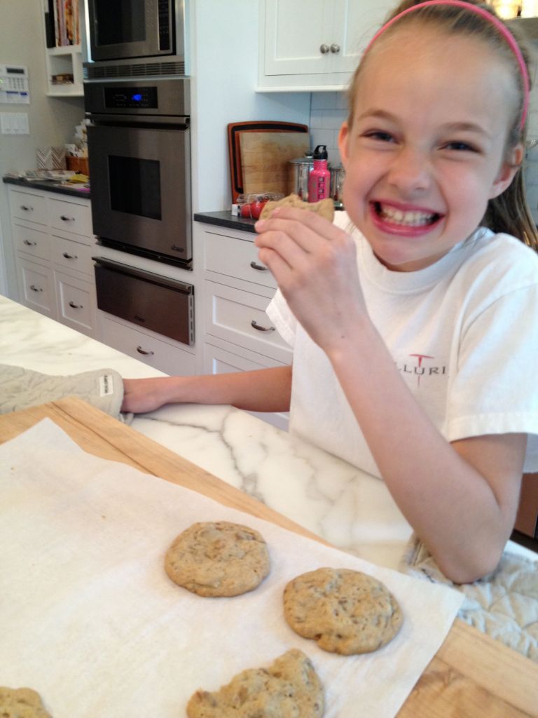 At the Thomas Jefferson School Science Fair earlier this week, students had the opportunity to make their own “Gak” – or polymer made from Elmer’s glue and Borax. It’s fun to play with for a while, until it ends up stuck to the car floor or buried at the bottom of a backpack.  At least with homemade bread dough and these magic chocolate buns, you get to play with your dough and eat it, too.  For a fun activity and tasty snack all in one, kids can help form the dough balls and stuff them with chocolate chips.  (Easy enough for a 7-year-old – see below.) Or for a special breakfast or brunch item, you could make the dough and form the buns the night before; in the morning, just bake for 20 minutes and serve hot and oozy.