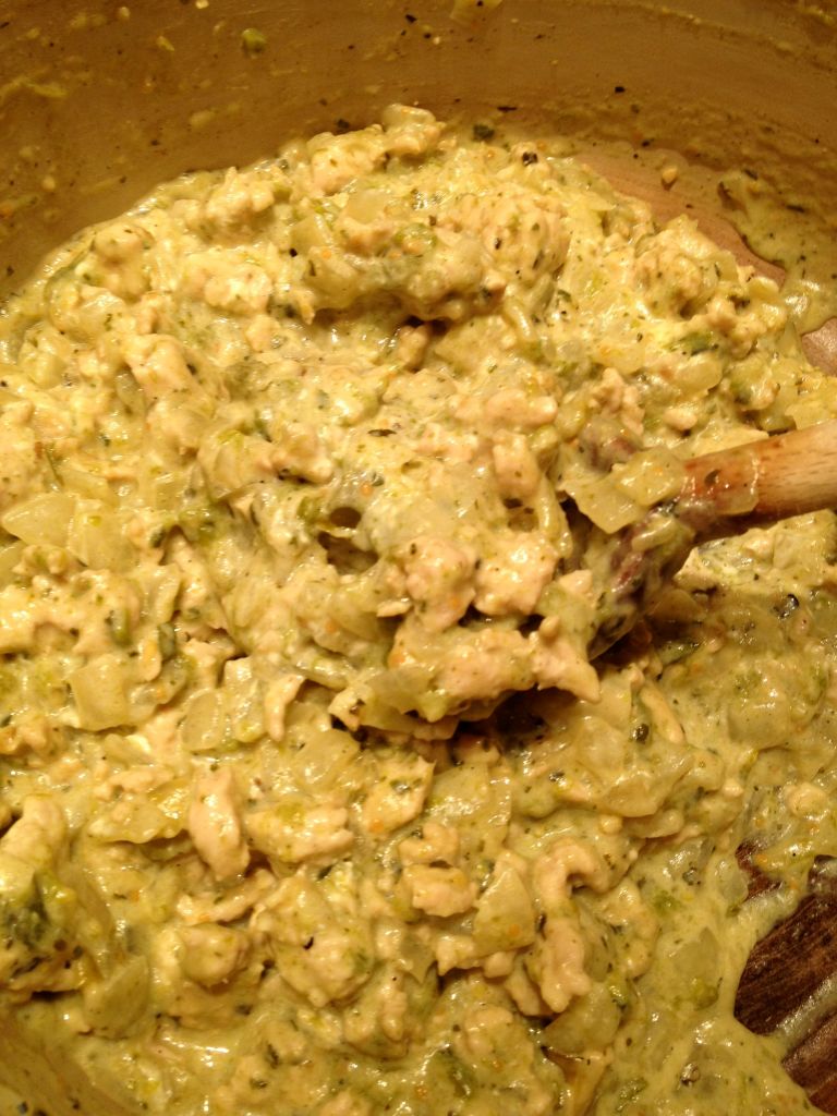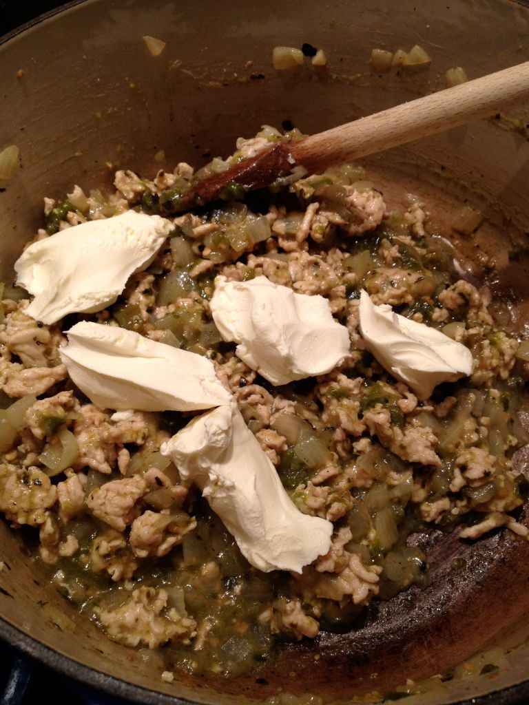 Remove from heat. Stir in cream cheese and taste for seasoning; add another pinch of kosher salt or sugar if you feel it needs more flavor.  Allow mixture to cool before filling empanadas.