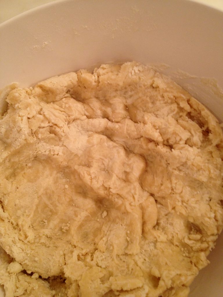 The dough should come together but not feel sticky. Add a little extra flour if necessary. The dough may not look pretty, but this is OK.