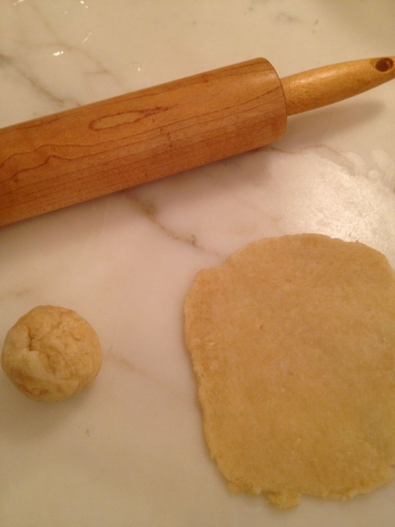 If using homemade dough, shape into walnut-sized balls. (You should get about 40.) With a rolling pin, roll dough flat into 3”- 4” circles.
