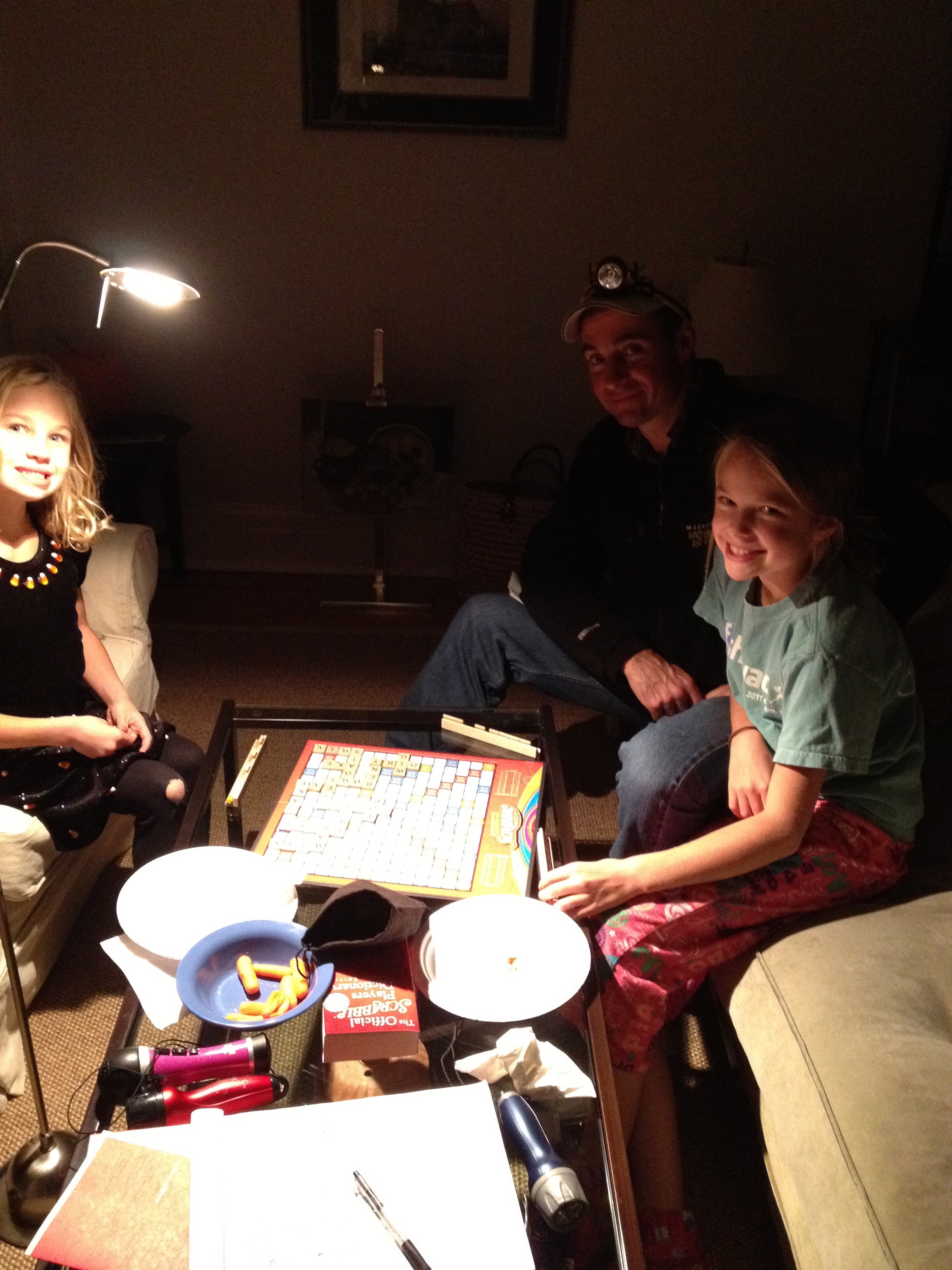 PS – On the way to Starbucks to post this, I passed 3 utility trucks working in our neighborhood. Someone heard we might have power as soon as tonight. I’m surprised to feel a twinge of sadness mixed with euphoria and relief; I was hoping for more Scrabble games by the fire. It’s a tradition I hope we’ll continue, even when the cable’s back.