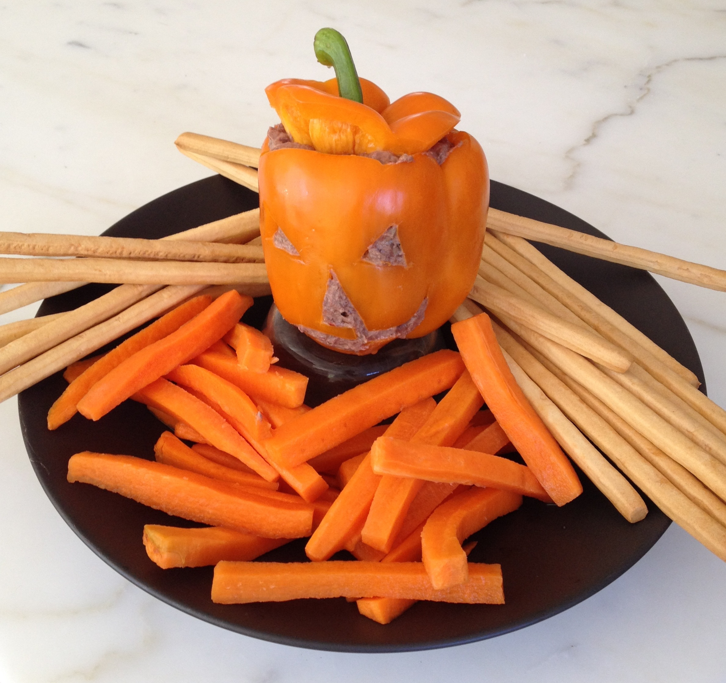 Serve after school (or at a Halloween party) with carrots and breadsticks. And don’t forget to eat the pepper afterwards, unless you’re wary of double-dippers. . .